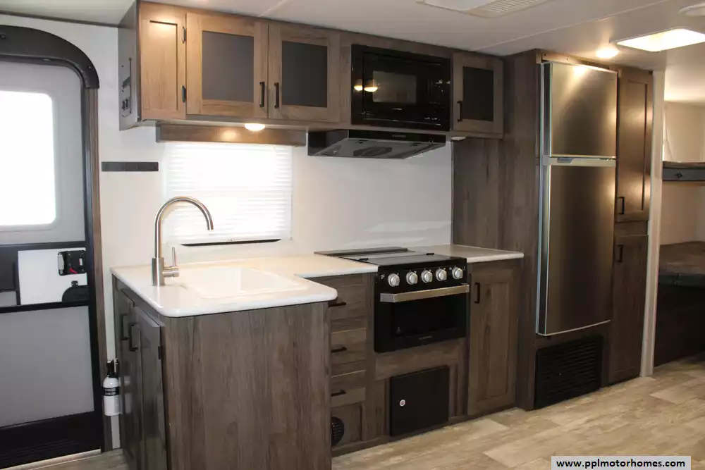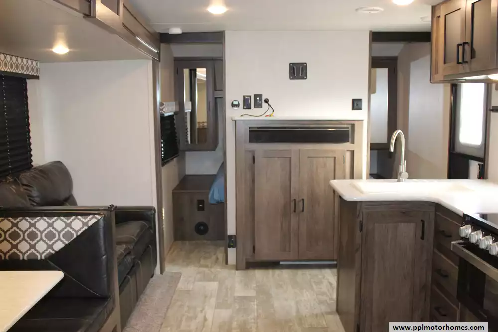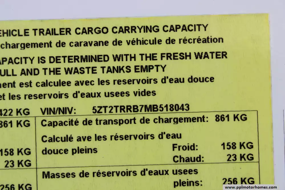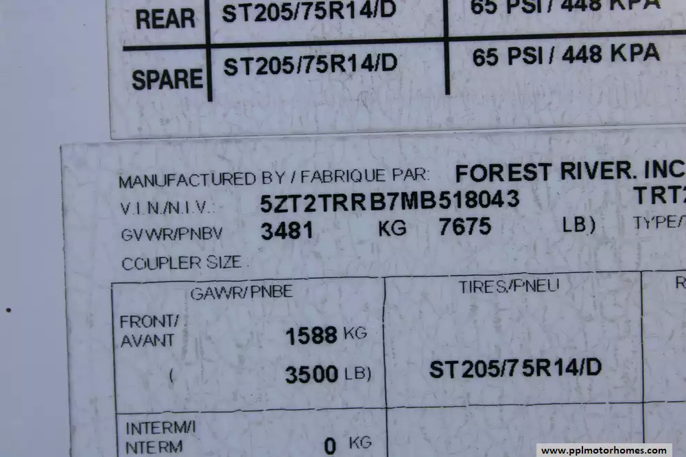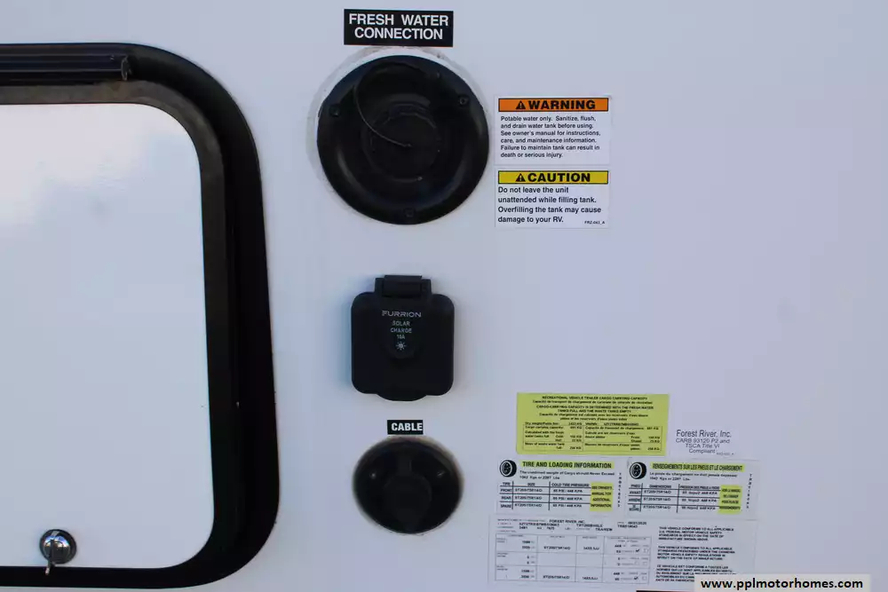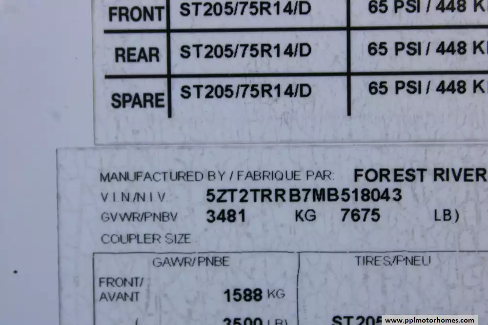 Specs: Length: 29.11 ft., Width: 8 ft., Height: 10.7 ft., Payload Capacity: 2,519 lbs., Total Fresh Water Tank Capacity: 42 gal., Total Gray Water Tank Capacity: 34 gal., Total Black Water Tank Capacity: 34 gal.