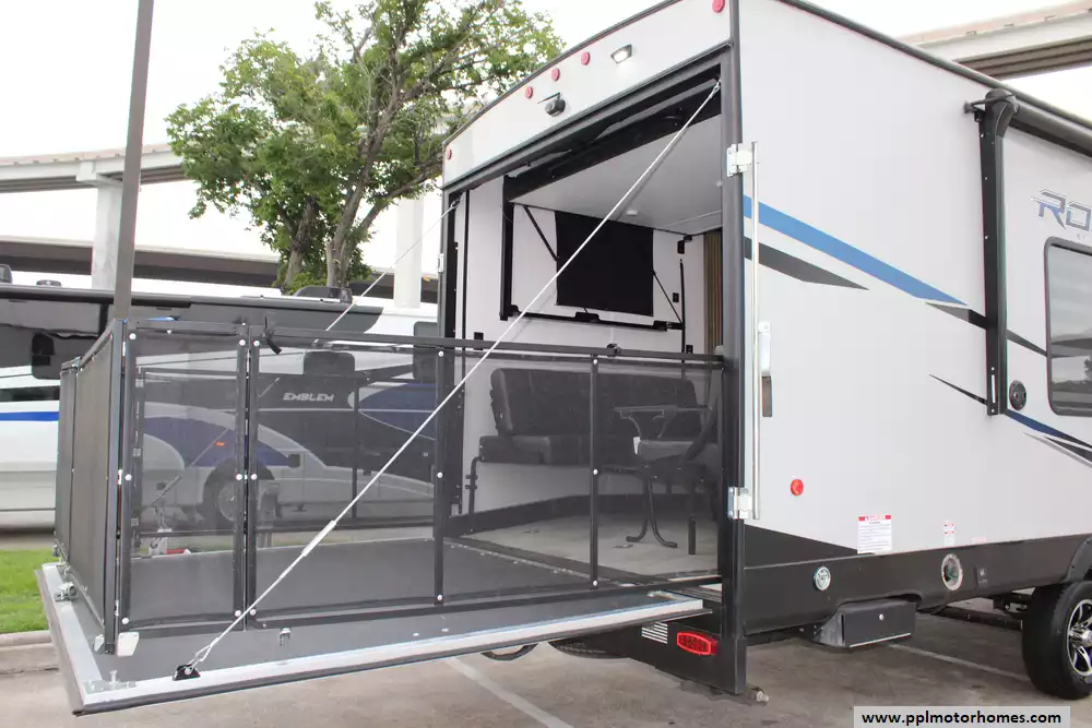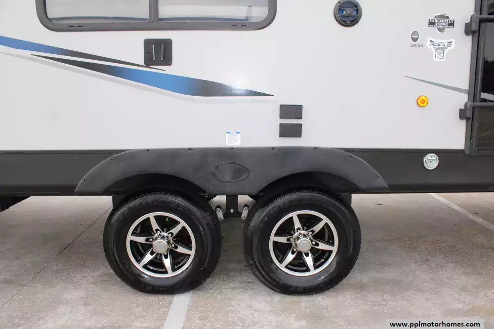 This 2021 Vengeance Rogue 26VKS offers a versatile blend of toy-hauler functionality and residential-level living-perfect for adventure lovers who want comforts like a king bed, full-size fridge, heated tanks, and entertainment systems. Features Include...Electric Tongue Jack, 1 Slide-out, 1 Ducted Air Conditioner, Double Door Gas/110v Norcold Refrigerator, Automatic Main Awning, Outside Speakers, TV, Outside Shower, Microwave, 3 Burner Range, and Oven. It's rugged yet refined, built for hauling your toys and relaxing in style.