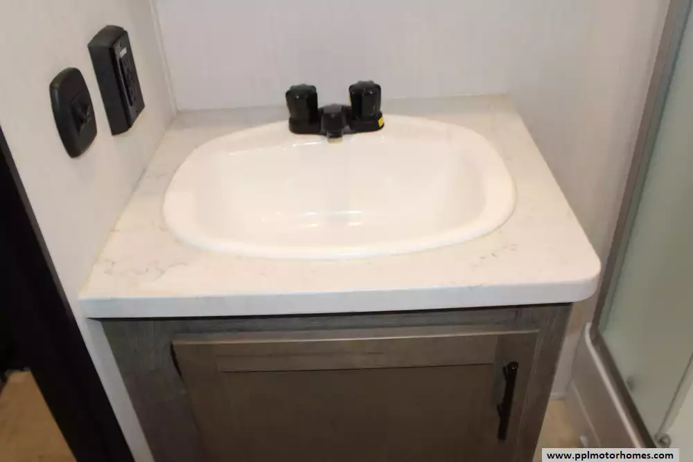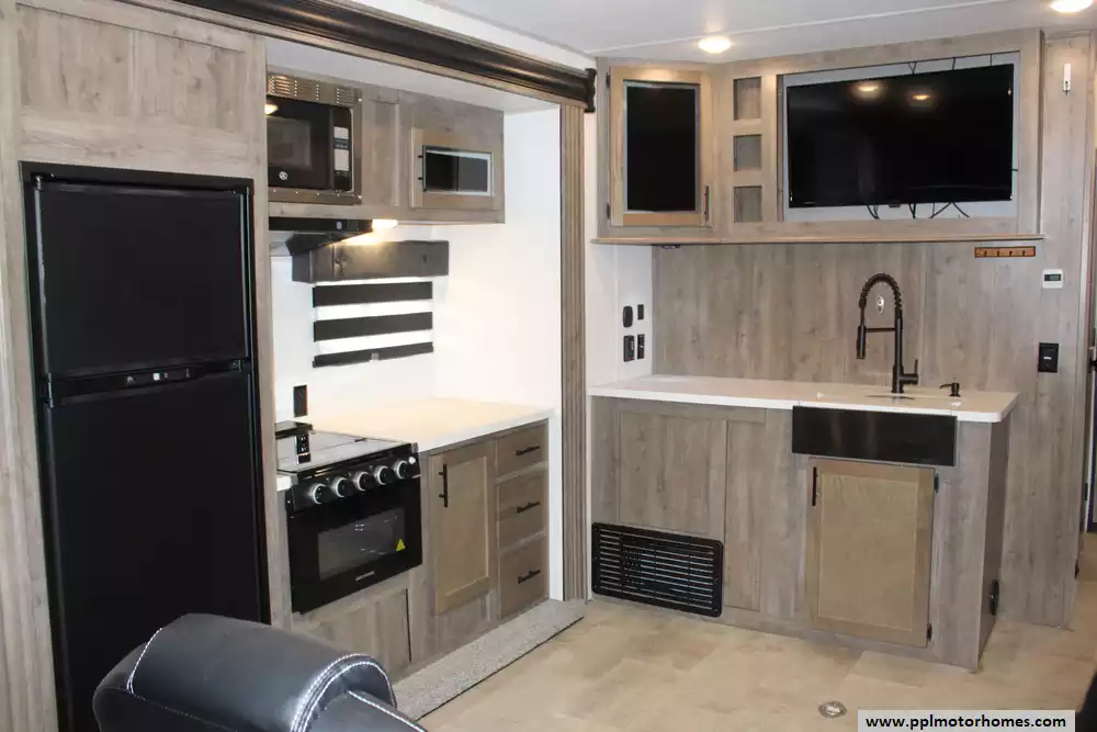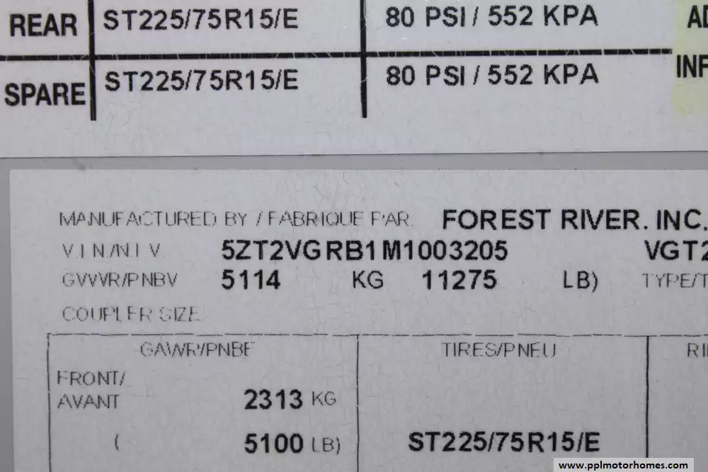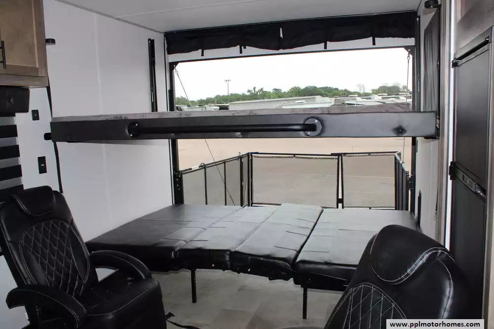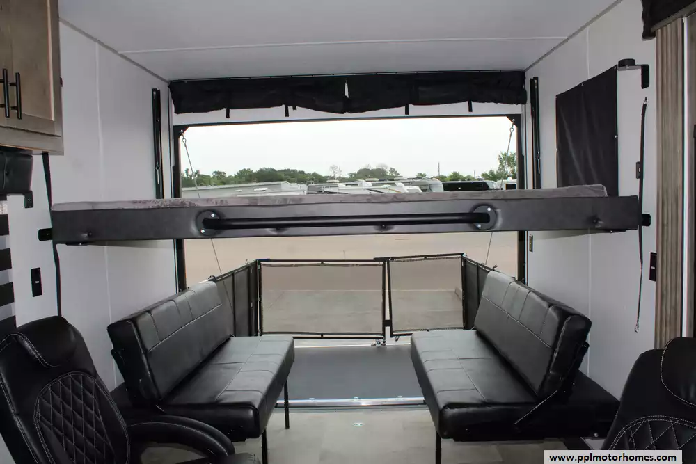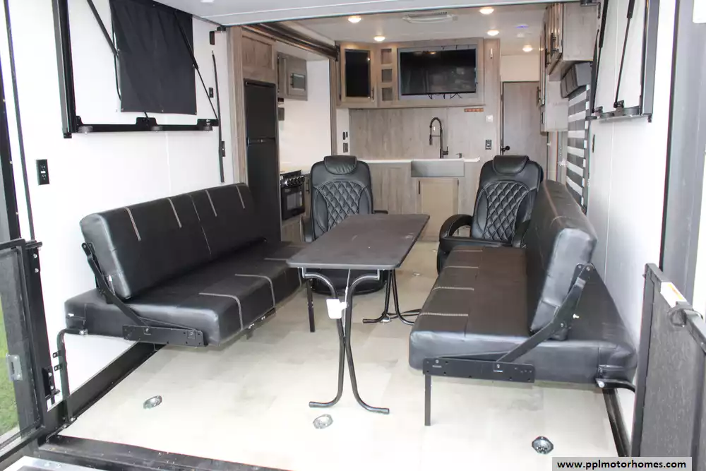 Specs: Length: 33.67 ft., Width: 8.5 ft., Height: 12.42 ft., Payload Capacity: 3,857 lbs., Total Fresh Water Tank Capacity: 94 gal., Total Gray Water Tank Capacity: 38 gal., Total Black Water Tank Capacity: 38 gal., Number of Propane Tanks: 2, Total Propane Tank Capacity: 40 lbs.