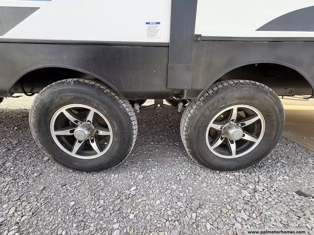 The 2021 Forest River Vibe 31ML features a rear kitchen layout with three slide-outs, providing a spacious central living area and a private front master suite. It is designed for comfort and extended stays, offering distinct zones for cooking, entertaining, and sleeping.