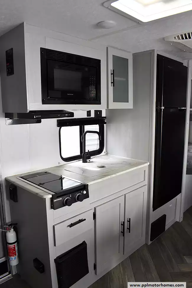 This 2021 Wildwood Fsx 178BHSK has an Electric Tongue Jack, 1 Slide-out, 1 Ducted Air Conditioner, Double Door 12v Everchill Refrigerator (Additional Refrigerator Present), Automatic Main Awning, Outside Speakers, TV, Outdoor Grill, Outside Shower, Convection Microwave, 2 Burner Range