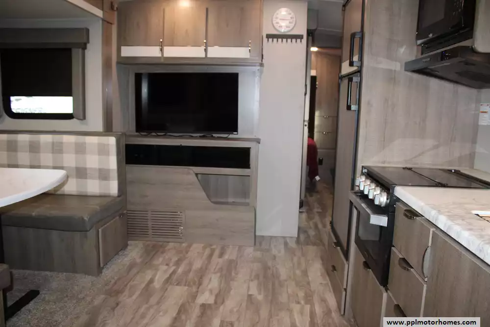 The 2021 Grand Design Imagine 2450RL is a versatile mid-size travel trailer that combines comfortable living with practical camping features, offering a rear living area with theater seating and a U-shaped dinette slide-out that makes the interior feel open and inviting. Designed to sleep up to four with a private front queen bedroom and a mid-unit bathroom with a residential-style shower and skylight, it also includes a well-equipped kitchen and a 40" LED TV for entertainment. Built on a durable fiberglass exterior with a one-piece roof membrane and generous holding tanks for extended stays, the 2450RL also features a power awning with LED lighting and ample pass-through storage, making it a great choice for couples or small families seeking comfort and functionality on the road.