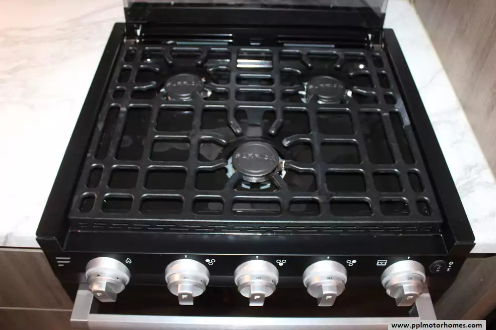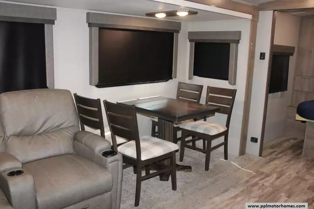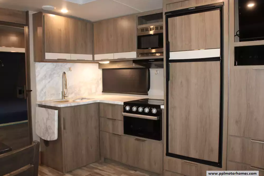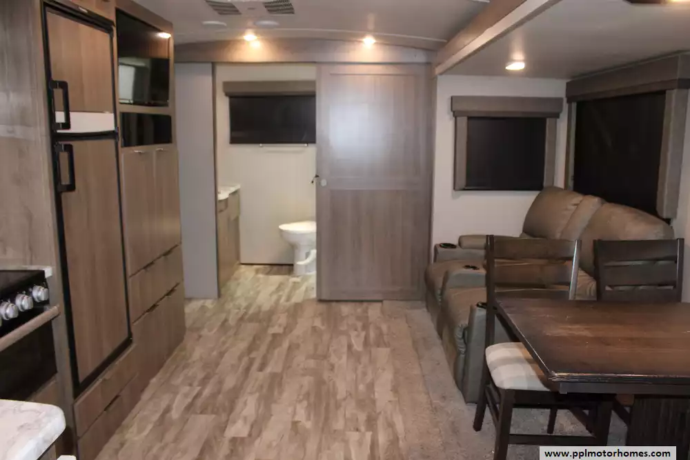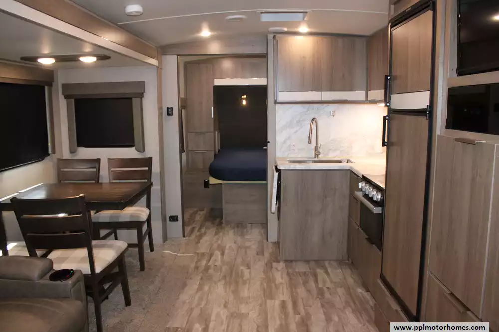 Specs: Length: 34 ft., Height: 11.2 ft., Width: 8 ft., Payload Capacity: 3,107 lbs., Total Fresh Water Tank Capacity: 40 gal., Total Grey Tank Capacity: 90 gal., Total Black Water Tank Capacity: 30 gal., Total Propane Tank Capacity: 20 lbs.