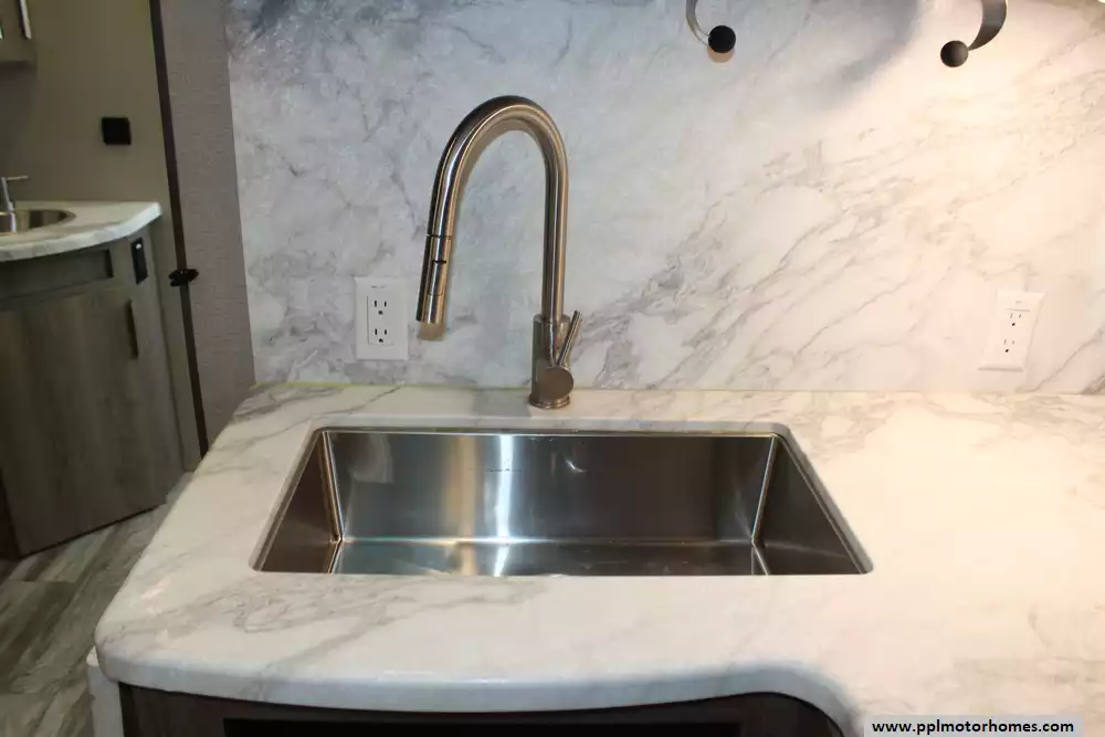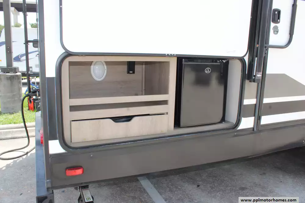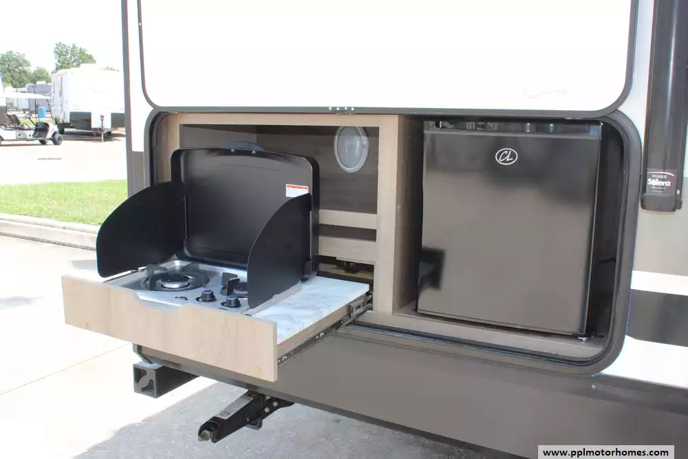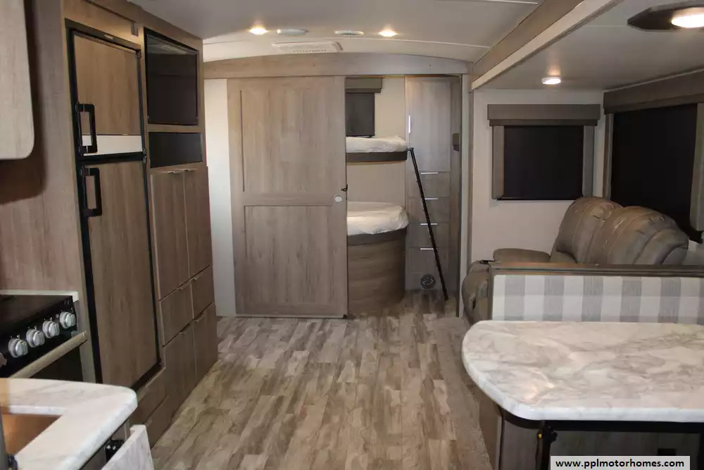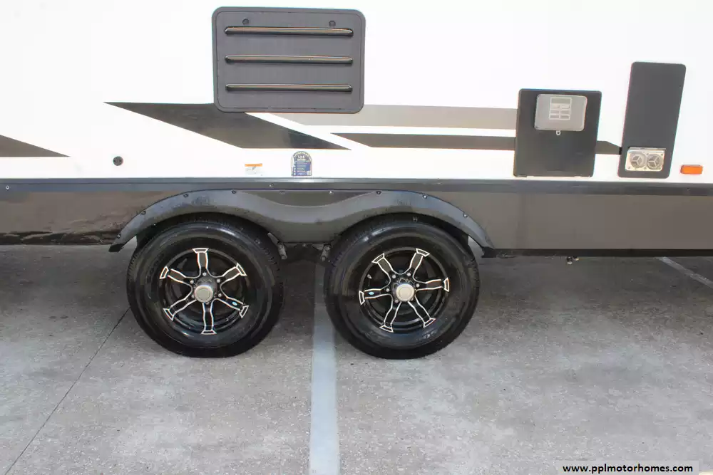 Specs: Length: 33.92 ft., Height: 11.14 ft., Interior Height: 6.75 ft., Total Fresh Water Tank Capacity: 52 gal., Total Gray Water Tank Capacity: 90 gal., Total Black Water Tank Capacity: 45 gal., Number of Propane Tanks: 2, Total Propane Tank Capacity: 40 lbs.