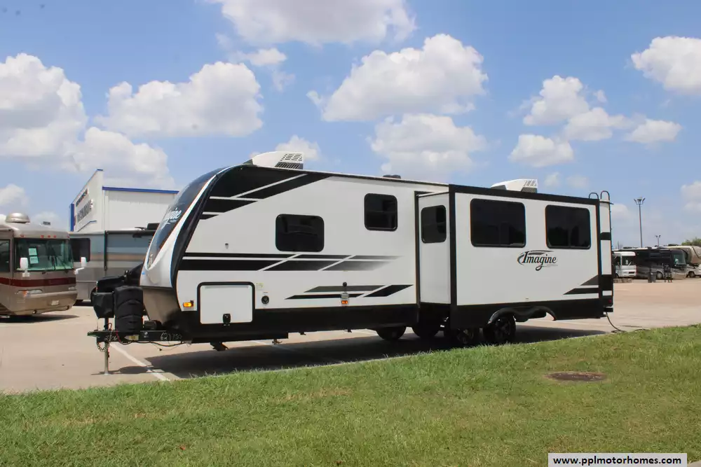 This 2021 Imagine 2910BH is a feature-rich, family-focused travel trailer offering a generous sleeping capacity and upscale interior feel. Features Include...Electric Tongue Jack, 1 Slide-out, 21 Ducted Air Conditioners, Double Door Gas/110v Dometic Refrigerator, In-Fridge Ice Maker, Automatic Main Awning, Outside Speakers, TV, DVD Player, Outdoor Kitchen, Outside Shower, Microwave, 3 Burner Range, and Oven.