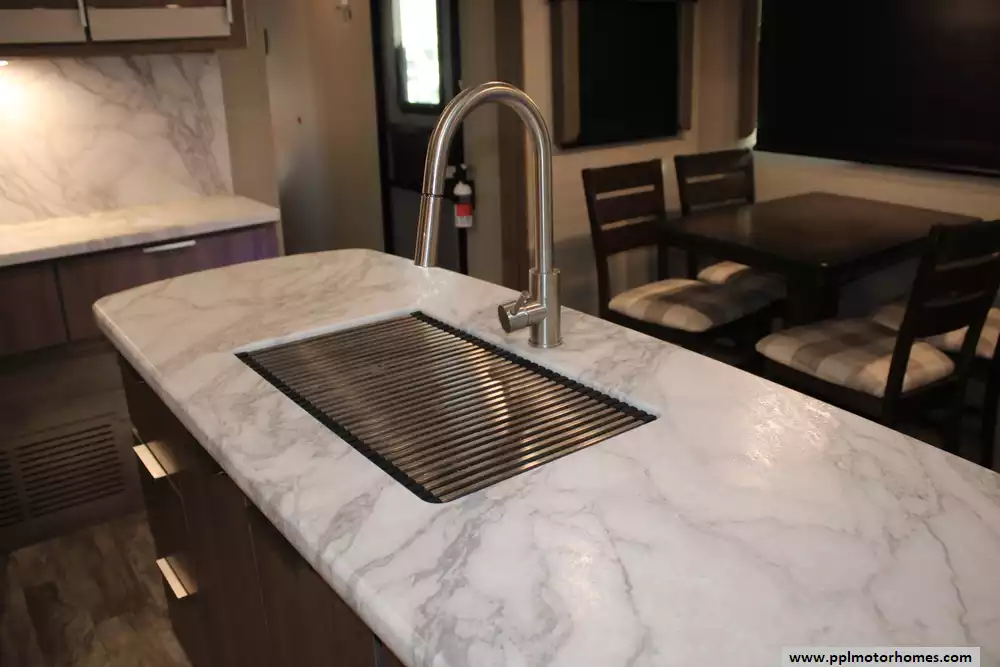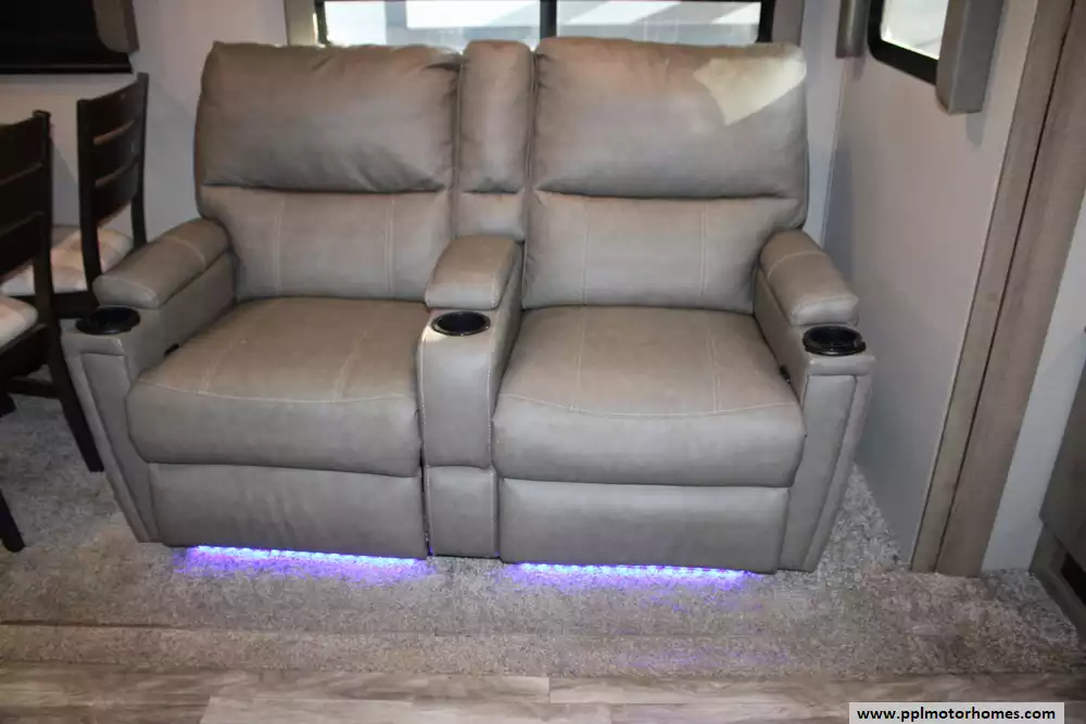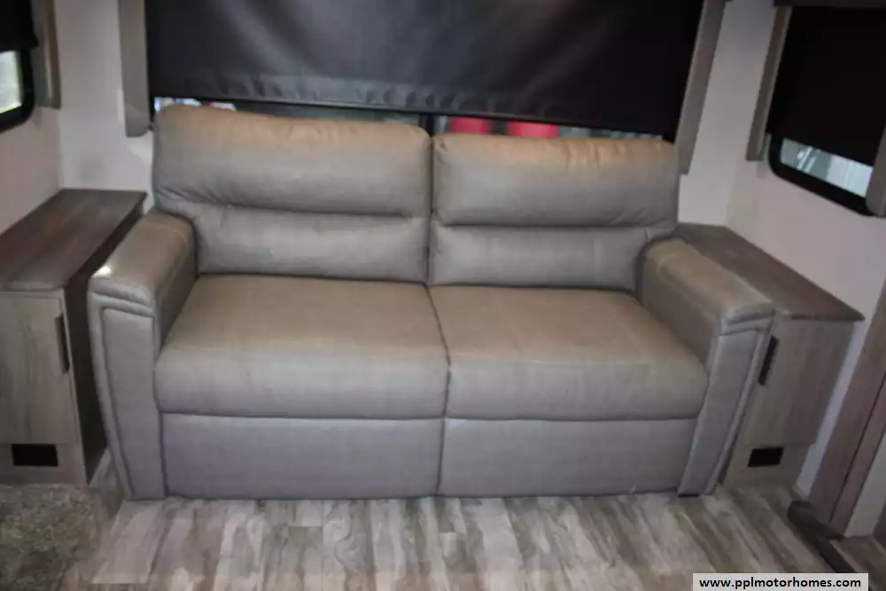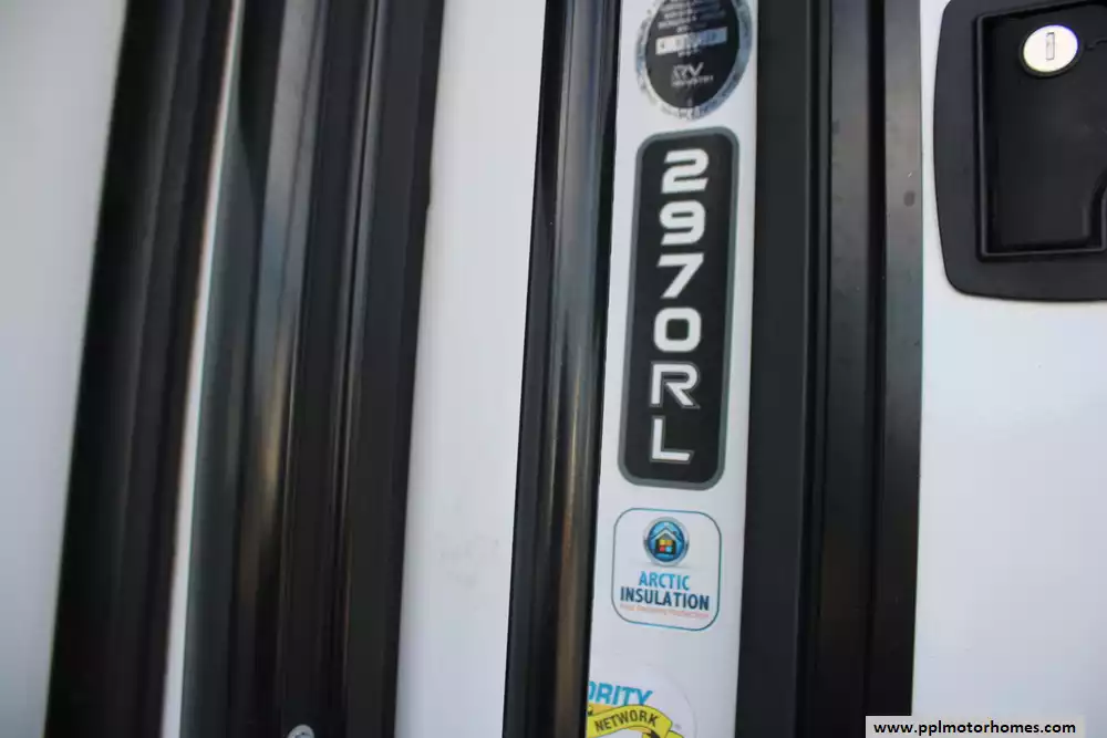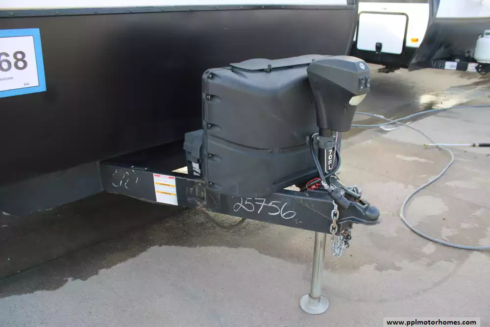 The 2021 Grand Design Imagine 2970RL is a well-appointed rear-living travel trailer that blends spacious, residential-style comfort with thoughtful camping functionality. Its dual opposing slide-outs expand the main living and kitchen area, which typically includes a kitchen island, theater seating with heat and massage, a tri-fold sofa and an entertainment center with a fireplace and 40" LED TV, while panoramic windows and an 81" interior ceiling height help create an open, airy feel. The front bedroom features a walk-around queen bed with storage, and ample tank capacities combined with features like a one-piece roof, heated and enclosed underbelly and universal docking station make it suitable for extended season use. Outside, dual power awnings and generous pass-through storage enhance your campsite experience, making the 2970RL a versatile choice for weekend getaways or full-time travel.