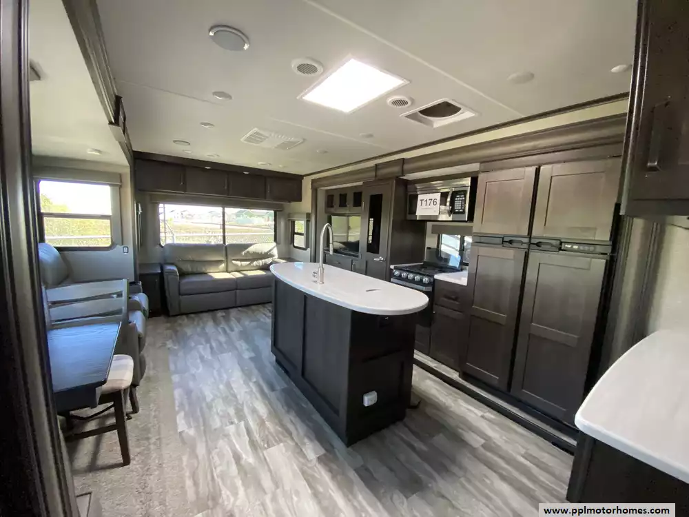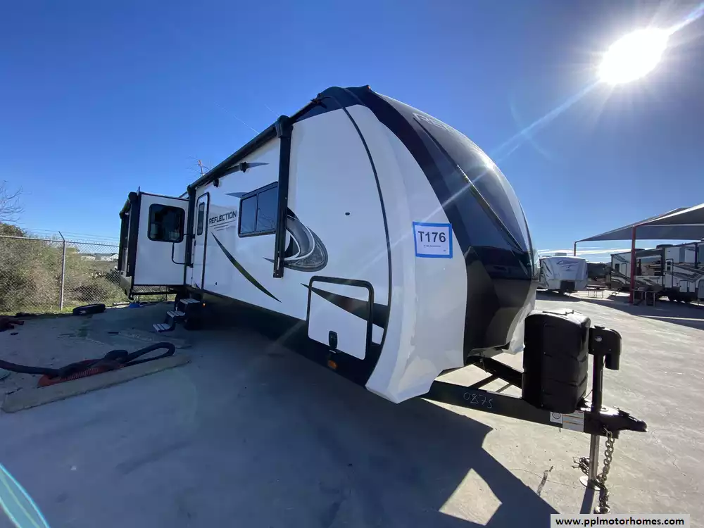 This 2021 Reflection 315RLTS has an Electric Tongue Jack, 3 Slide-outs, , 2 Ducted Air Conditioners, Double Door 12v Norcold Refrigerator, Automatic Two Awning, Washer/Dryer Connections, Heated Tanks, Outside Speakers, TV, DVD Player, Outside Shower, Fireplace, Microwave, 3 Burner Range, Oven, Furion Back-Up Cameras, Tire Minder TPMS,Maxfan 4500 with Remote in Bathroom, Level Mate Pro wireless, 2 Maxxair Fanmate covers, Wireless LED dimmers in Living area and Bedroom for all Ceiling Lights, Waggle Pet Monitor, Victron Smart Shunt Battery Monitor, JC Refrigeration duel 12 Volt Compressor, 300AH Big Beard Lithium battery with Victron Charger, Electric Stabilizers