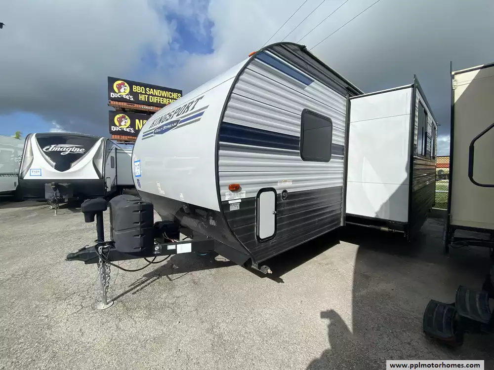 This 2021 Gulf Stream Ameri-Lite 268BH has an Electric Tongue Jack, 1 Slide-out, 1 Ducted Air Conditioner, Double Door 12v Everchill Refrigerator, Automatic Main Awning, Outside Speakers, TV, Microwave, 3 Burner Range