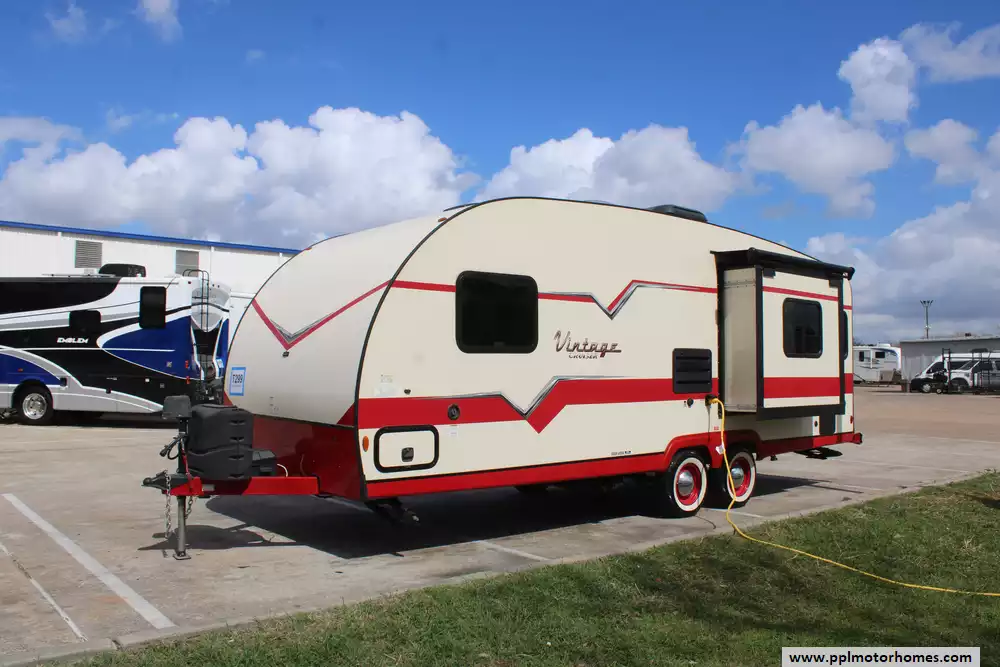 The 2021 Vintage Cruiser 23RSS perfectly captures the nostalgic spirit of 1950s camping while delivering the high-end performance today's travelers demand. This 26-foot travel trailer is celebrated for its lightweight, aerodynamic fiberglass body and durable rubber roof, offering a classic aesthetic that turns heads at every campsite. Setting up is effortless thanks to the electric tongue jack and automatic main and slide-out awnings, while the single slide-out significantly expands the interior living space to create a bright, airy atmosphere that belies its easy-to-tow footprint.