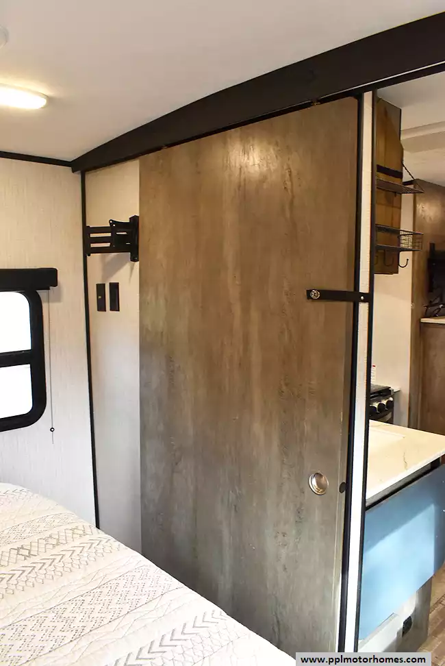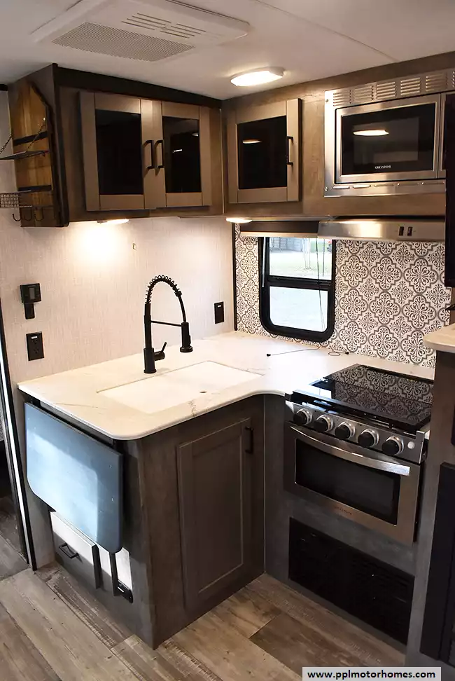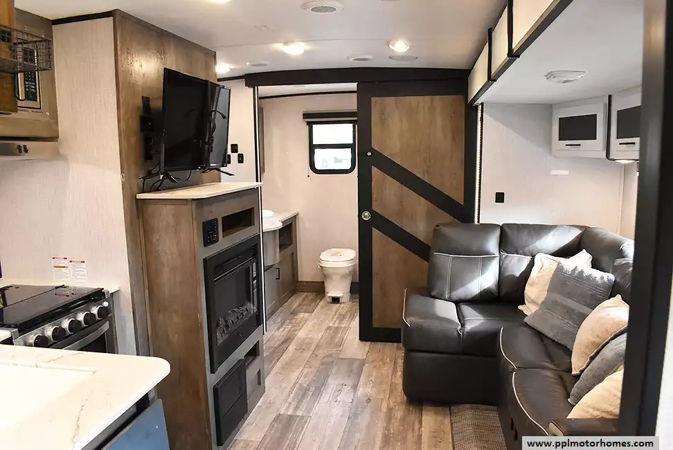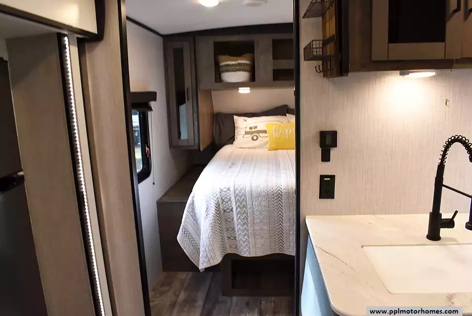 Lightweight and easy to tow, this travel trailer is perfect for weekend getaways or extended trips. Features include a spacious rear bath, queen bed, full kitchen, and plenty of storage with a farmhouse feel. Modern finishes and a cozy layout make it ideal for couples or small families.