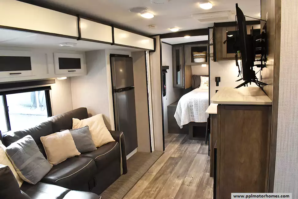 (Floor plan is NOT drawn to scale. Length of vehicle is approximate. Buyer is responsible for verifying actual length. PPL Motor Homes compiled this list of features, specifications, equipment and options as a guide. No representation or warranties, either express or implied, are made as to the accuracy of the information herein. Please verify for yourself all items listed before purchase.)