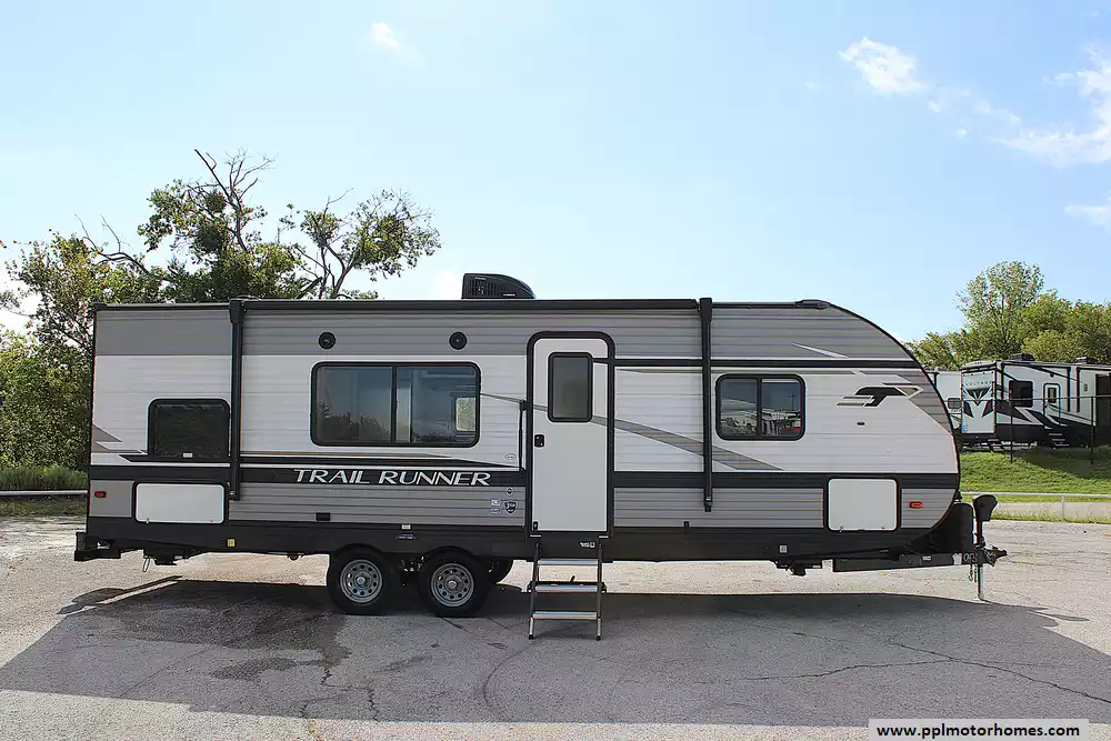 2021 Heartland Trail Runner TR 251 BH, a beautifully designed travel trailer that blends comfort, practicality, and modern style. At just over 29 feet in length and with a dry weight of around 4,800 lbs, this unit is easy to tow with a properly equipped half-ton truck or full-size SUV, giving you the freedom to explore without limits. Its aerodynamic profile and durable construction ensure a smooth ride to your favorite destinations, while its sleek exterior and power awning invite you to relax outdoors in style.