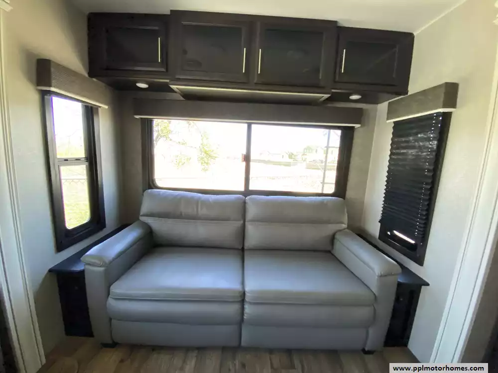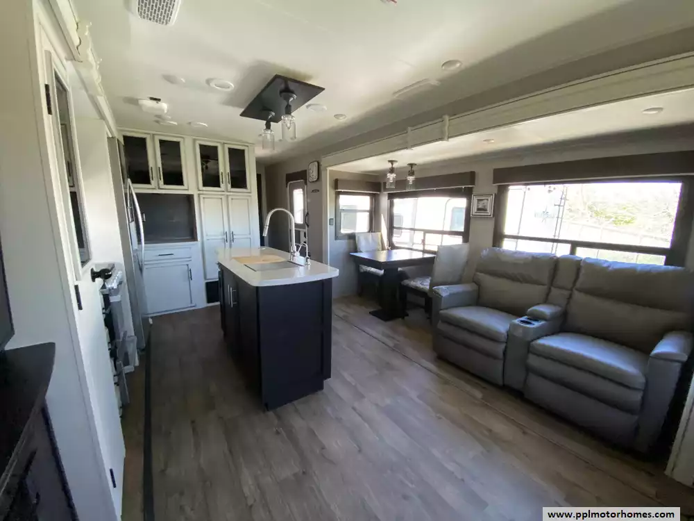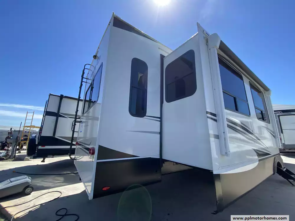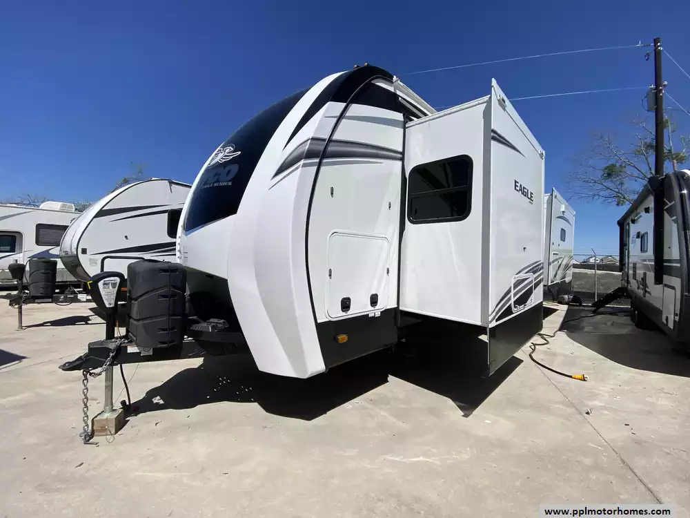 Experience the pinnacle of luxury towing with the 2021 Eagle Series 330RSTS, a 40-foot travel trailer designed to offer a high-end fifth-wheel experience on a single, flat-deck level. Renowned for its industry-leading construction, this model features Jayco's Magnum Truss Roof System and Stronghold VBL vacuum-bonded fiberglass walls, ensuring lasting durability and superior weather protection. With three spacious slide-outs and an impressive interior height, the living area feels remarkably open and residential, making it a favorite for those seeking a primary destination trailer or a comfortable long-term residence without the hassle of extra stairs.