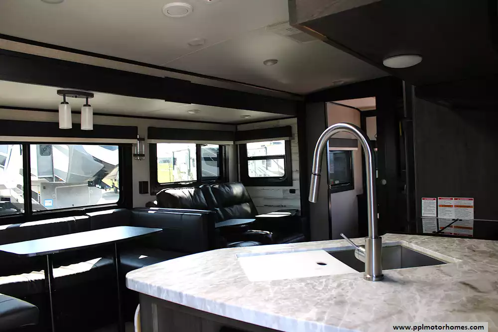 Towing is a breeze with a properly equipped half-ton or larger vehicle, making it accessible for a wide range of adventurers ready to embrace the RV lifestyle. With a dry weight of just over 7,100 lbs and a GVWR of 8,500 lbs, it delivers confident handling while still offering generous cargo capacity. The aerodynamic profile, lightweight construction, and durable chassis ensure smooth travels, while dual propane tanks and ample tank capacities mean you can journey further without compromise.