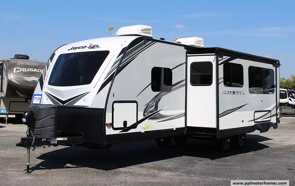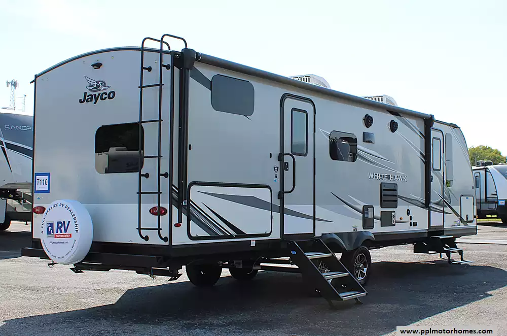 2021 Jayco White Hawk 29BH, a travel trailer that blends family-friendly comfort with upscale style. At nearly 35 feet in length, this unit offers the perfect balance of spacious living and towability. Designed to sleep up to 10 people, it features a private master suite, roomy double-over-double bunks, and a convertible U-shaped dinette and sofa that ensure every traveler has a cozy retreat. Whether it's a weekend getaway or a cross-country journey, the White Hawk 29BH brings home-like luxury to the open road.