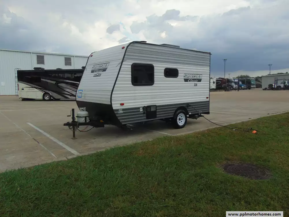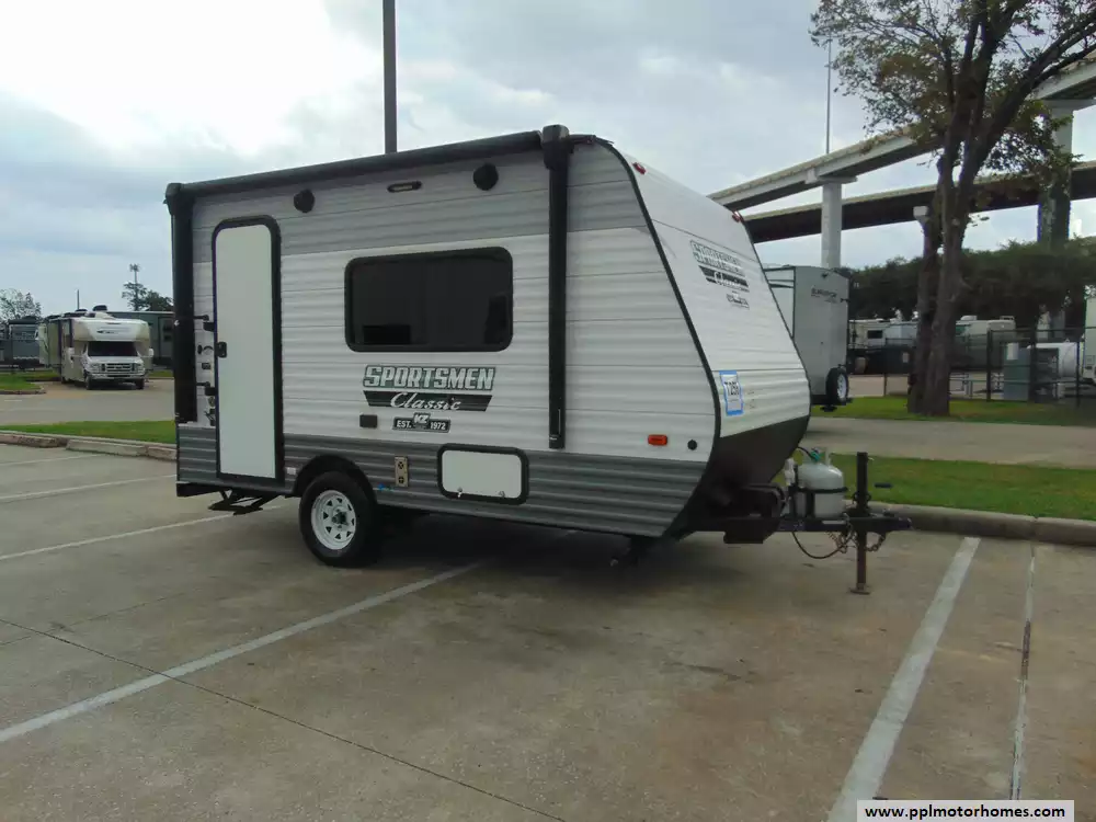 This 2021 Sportsmen Classic 130RB is a compact, lightweight travel trailer,perfect for solo travelers or couples looking for a simple,easy-to-tow RV.Despite its compact size, this trailer features all the essential amenities needed for a comfortable trip.Features Include...1 Non-Ducted Air Conditioner, Single Door 110v Refrigerator, Automatic Main Awning, Satellite Dish, Microwave,and 2 Burner Range.This is perfect for those who want a no-fuss camping experience with all the essential comforts, packaged in a lightweight and easy-to-tow trailer.