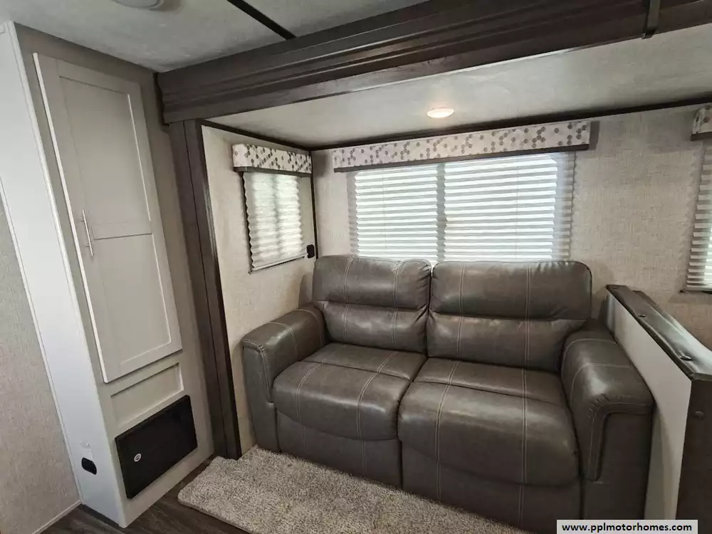 Outdoor living is a priority with this model, featuring an automatic main awning alongside specialized window and door awnings to keep your campsite cool and shaded. You can host the perfect afternoon cookout with the outdoor grill and integrated outside speakers, then tidy up easily using the outside shower. From the convenience of the electric tongue jack for effortless setup to the thoughtful, airy layout, this Bullet Ultra Lite reflects Keystone's reputation for reliability and maximum utility, making it a top choice for travelers who want to explore without compromise.