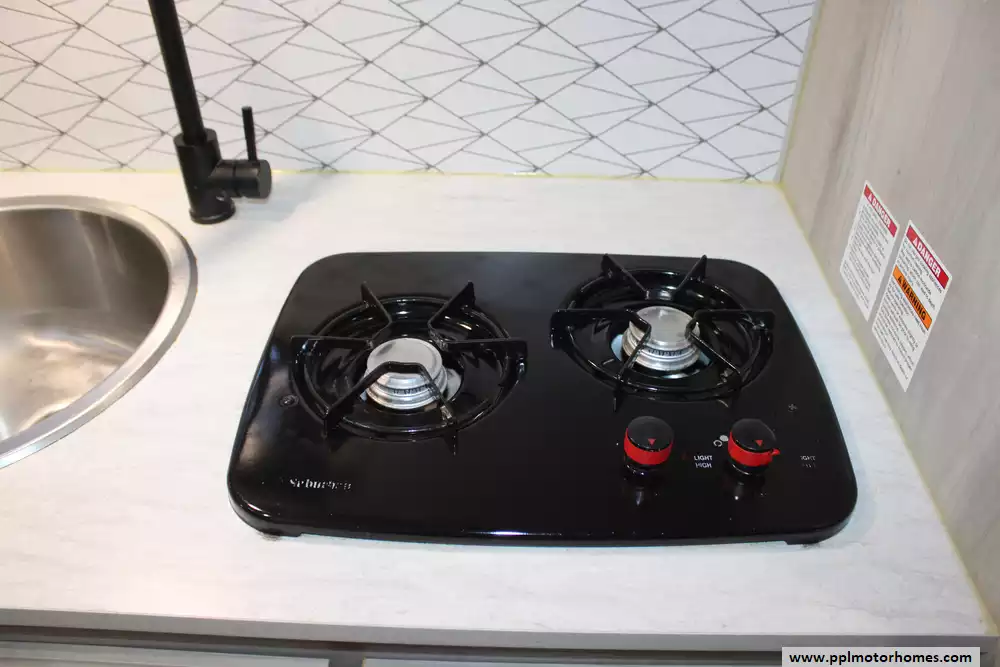 Specs: Length: 22 ft., Width: 7.5 ft., Height: 9.33 ft., Interior Height: 6.5 ft., Payload Capacity: 765 lbs., Total Fresh Water Tank Capacity: 20 gal., Total Gray Water Tank Capacity: 30 gal., Total Black Water Tank Capacity: 30 gal., Total Propane Tank Capacity: 20 lbs.
