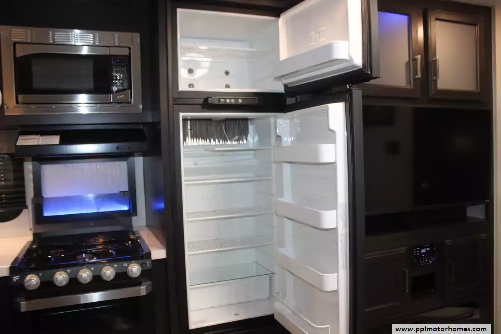 Specs: Length: 35.9 ft., Width: 8 ft., Height: 11.4 ft., Payload Capacity: 1,630 lbs., Interior Height: 6.83 ft., Total Fresh Water Tank Capacity: 45 gal., Total Grey Tank Capacity: 32 gal., Total Black Water Tank Capacity: 32 gal., Propane Tank Capacity: 60 lbs.