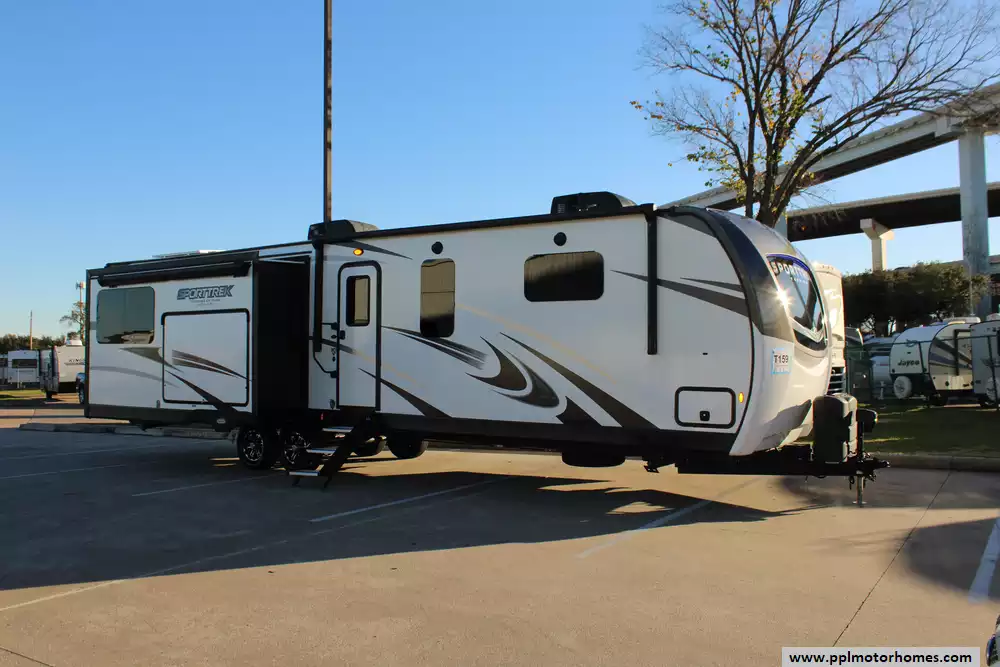 This 2021 Sporttrek Touring 336VRK is a luxurious and spacious travel trailer designed for those who seek comfort and style on their adventures. With meticulous attention to detail and innovative features, this RV offers a home-away-from-home experience for travelers.Features Include...Has an Electric Tongue Jack, 3 Slide-outs, 2 Ducted Air Conditioners, Double Door 110v Furrion Refrigerator, Automatic Main Awning And Slide Awning, Washer/Dryer Connections, Solar Panel, Outside Speakers, TV, DVD Player, Outdoor Kitchen, Outside Shower, Fireplace, Microwave, 3 Burner Range,and Oven.This is a well-designed and feature-rich travel trailer that combines luxury, functionality, and durability, making it an ideal choice for travelers seeking a premium camping experience.