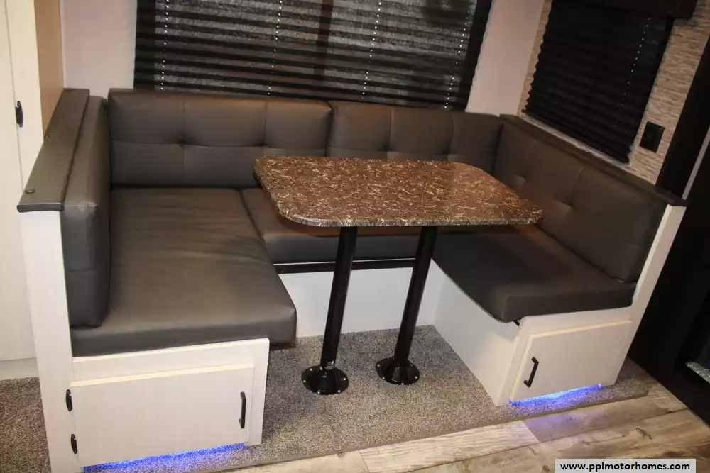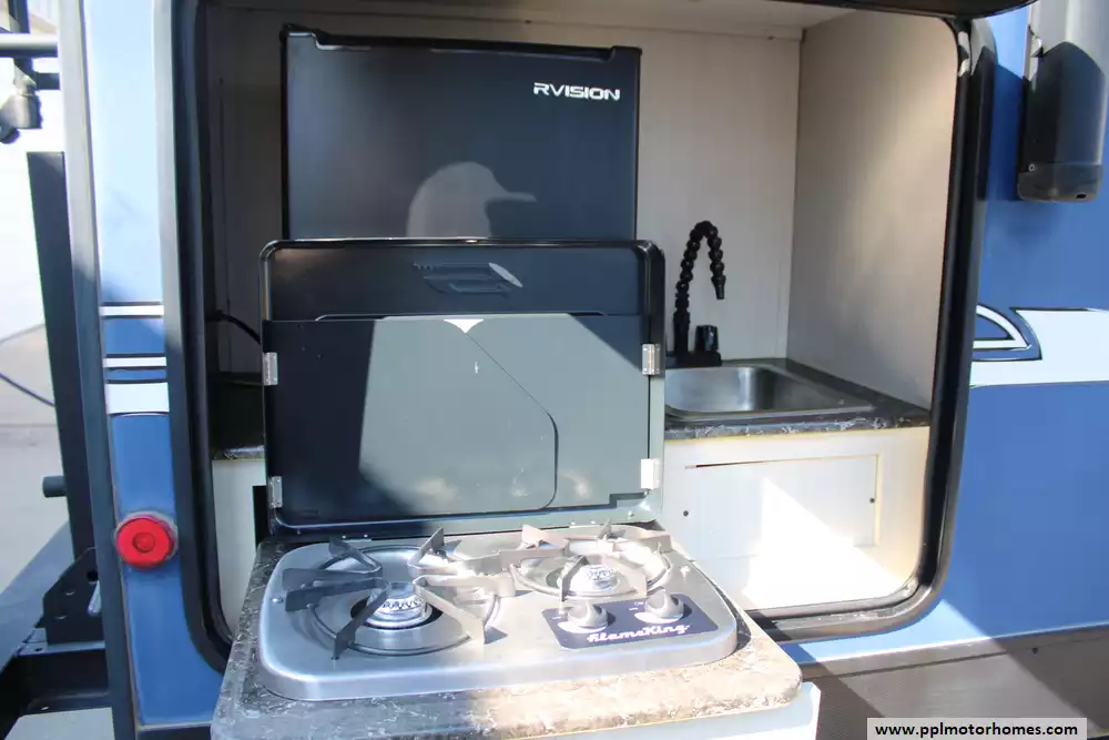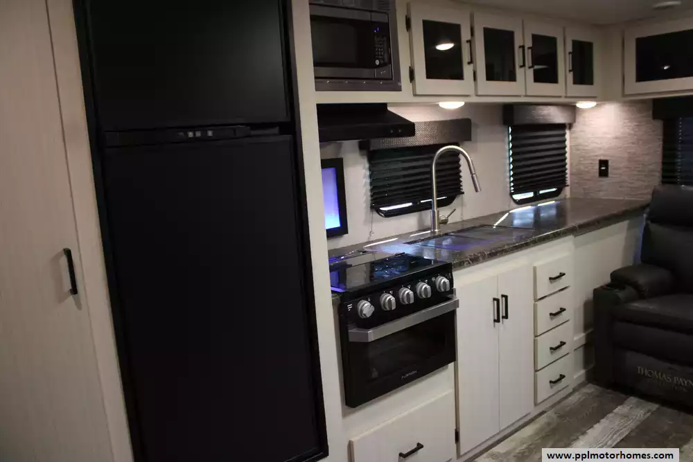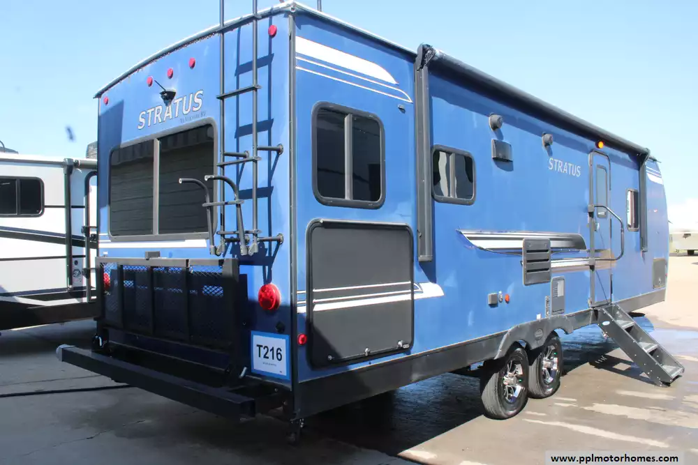 The 2021 Venture RV Stratus 271VRS is a rear-kitchen travel trailer that manages a sweet spot of amenities, size, and comfort for families or folks who like a little extra living space. It offers a single slide-out, and plenty of water storage (a 51-gal fresh tank, 64-gal gray, 32-gal black) so you're not constantly filling up. it has a standard 8 cu ft refrigerator, 30,000 BTU furnace, LP gas in two 20-lb bottles, and a 16-ft awning for outdoor shade. It has a standard 8 cu ft refrigerator, 30,000 BTU furnace, LP gas in two 20-lb bottles, and a 16-ft awning for outdoor shade. All in all, it's a well-balanced trailer that gives good living space without going overboard, fairly lightweight for its class, yet not skimping on creature comforts.