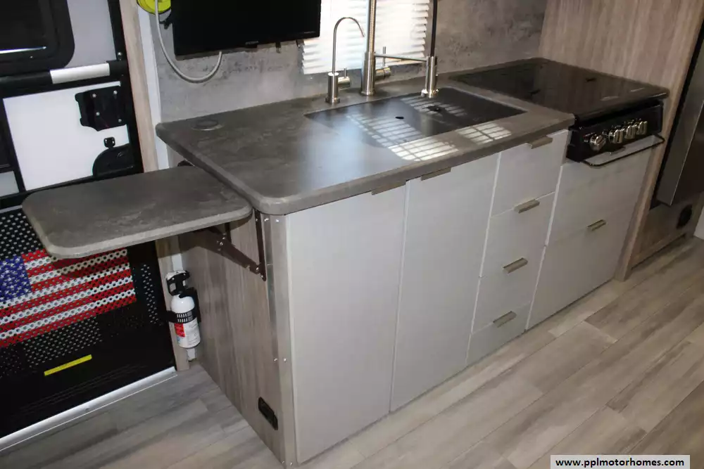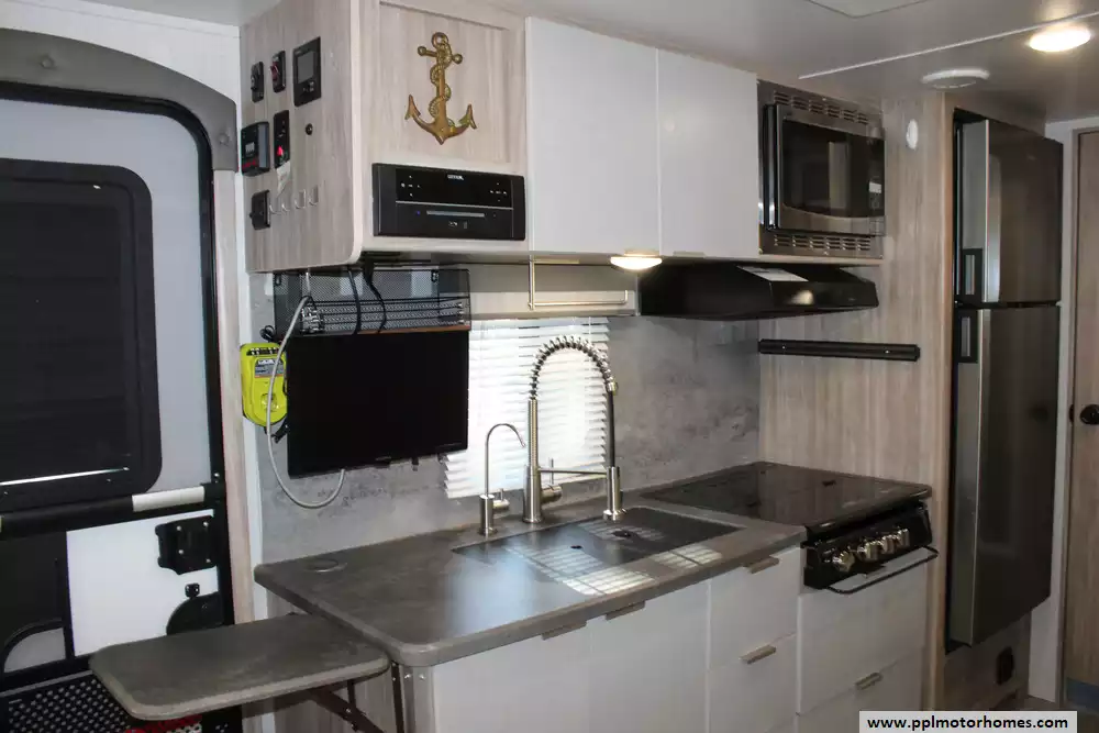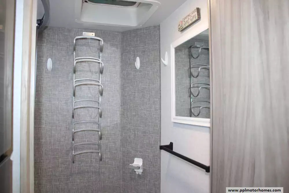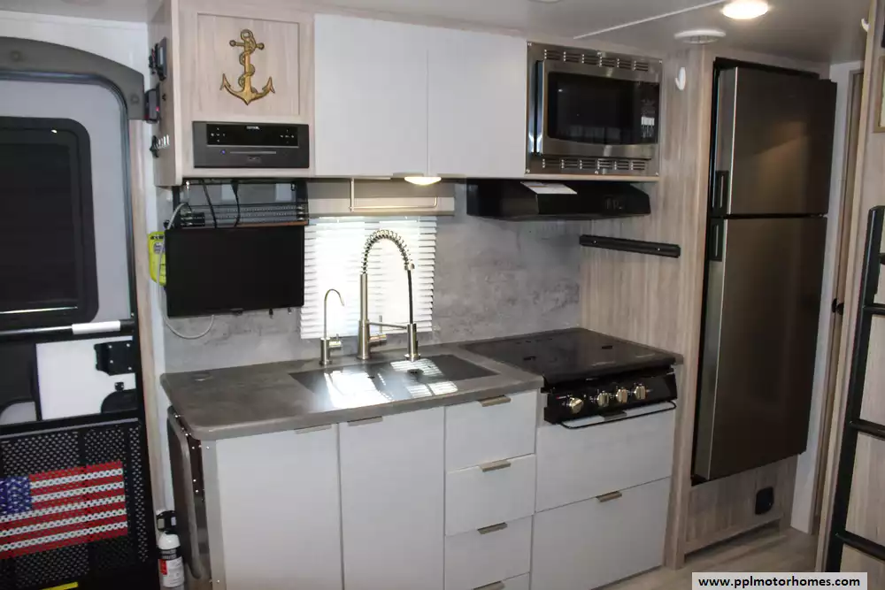 Specs: Length: 21.11 ft., Width: 7 ft., Height: 10.5 ft., Interior Height: 6.4 ft., Total Fresh Water Tank Capacity: 31 gal., Total Gray Water Tank Capacity: 25 gal., Total Black Water Tank Capacity: 25 gal., Number of Propane Tanks: 2, Total Propane Tank Capacity: 40 lbs.