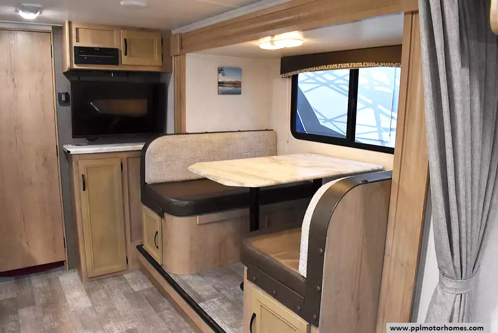 This 2021 Micro Minnie 2108TB has an Electric Tongue Jack, 1 Slide-out, 1 Ducted Air Conditioner, Double Door Gas/110v Dometic Refrigerator, Automatic Main Awning And Window/Slide Awnings, Outside Speakers, TV, DVD Player, Outside Shower, Microwave, 3 Burner Range