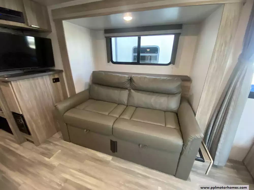 This 2021 Micro Minnie 2306BHS has an Electric Tongue Jack, 1 Slide-out, 1 Ducted Air Conditioner, Double Door 110v Dometic Refrigerator, Automatic Main Awning, Solar Panel, Outside Speakers, TV, DVD Player, Outside Shower, Convection Microwave, 3 Burner Range