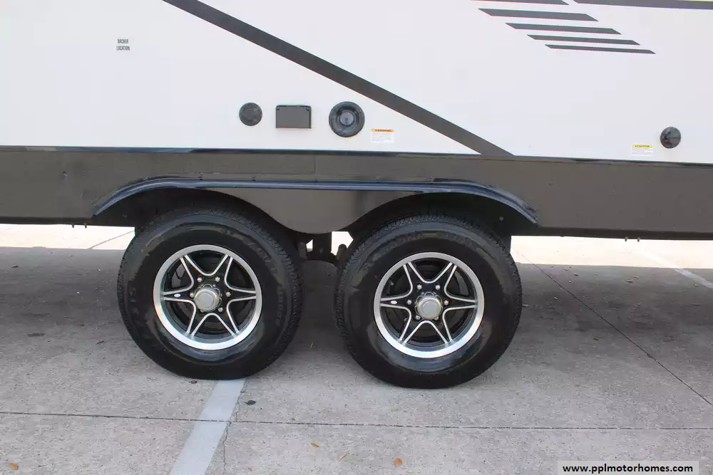 Specs: Length: 29.6 ft., Height: 11.5 ft., Width: 8 ft., Interior Height: 6.8 ft., Total Fresh Water Tank Capacity: 60 gal., Total Grey Tank (2) Capacity: 98 gal., Total Black Water Tank Capacity: 49 gal., Propane Tank Capacity: 40 lbs.