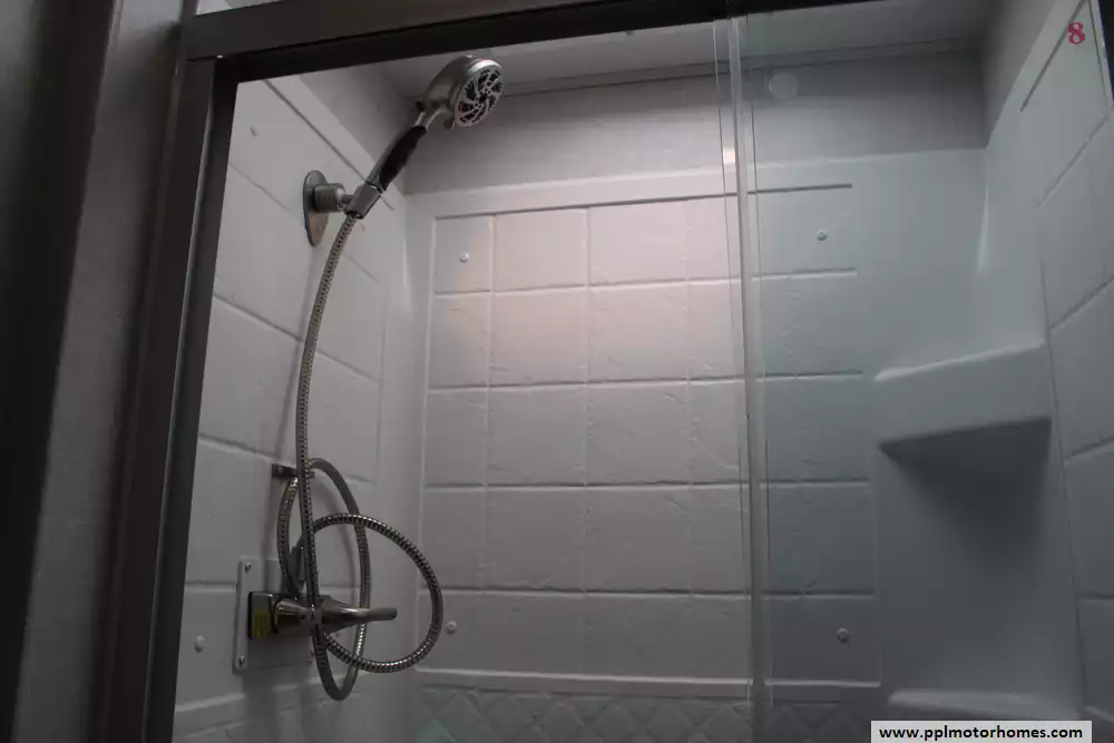Specs: Length: 34.085 ft., Width: 8 ft., Height: 11.5 ft., Interior Height: 7 ft., Payload Capacity: 2,800 lbs., Total Fresh Water Tank Capacity: 50 gal., Total Gray Water Tank Capacity: 100 gal., Total Black Water Tank Capacity: 50 gal., Number of Propane Tanks: 2, Total Propane Tank Capacity: 60 lbs.