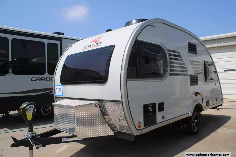 The 2021 Xtreme Outdoors Little Guy MAX is a compact yet feature-rich teardrop trailer designed for couples or solo travelers seeking comfort and convenience on the road. With a dry weight ranging from 3,060 to 3,140 lbs and a GVWR between 4,000 and 4,200 lbs, it offers a balance of portability and durability. The interior boasts a 6'7" ceiling height, allowing for a spacious feel, and includes a queen-size bed, and a wet bath with a shower, sink, and toilet. The kitchen is equipped with a microwave, two-burner stove, and a floor-to-ceiling pantry for ample storage. Exterior features include a large pass-through storage compartment, a 2" rear receiver for bike or storage racks, and an optional Rough Rider package with 15" off-road tires and a 2.5" axle riser for added clearance. Additional amenities include an exterior entertainment center with a TV mount, two 5" outdoor speakers, and HDMI, coax, and power outlets. This model had the tires replaced with standard trailer tires and the dinette replaced with a camping table.