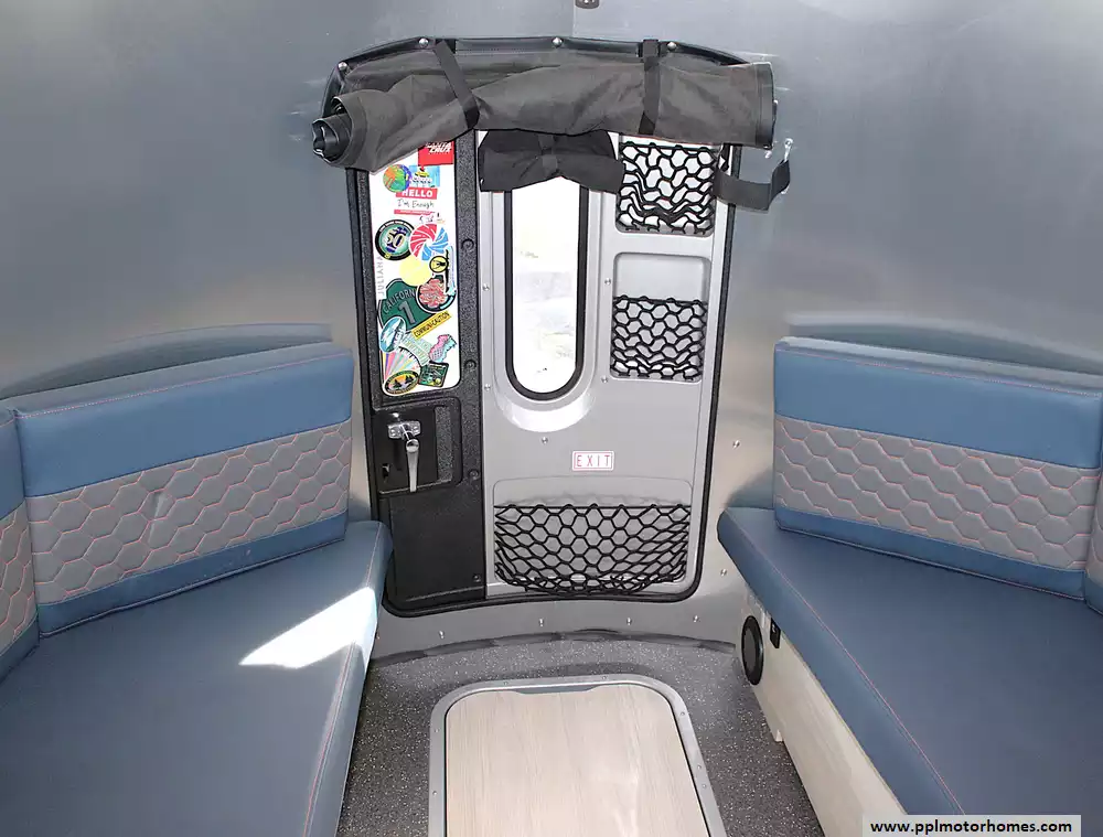 Designed for versatility, the interior includes a refrigerator, sink, convertible dining/lounge space, and climate control for year-round comfort. This unit does not have a stovetop, giving you extra counter space and flexibility for portable cooking options or outdoor meal prep. The smart layout allows you to bring bikes, gear, or adventure equipment while still enjoying a comfortable living environment after a long day outdoors. Durable construction, off-grid capability features, and Airstream's renowned craftsmanship make this trailer ideal for both weekend getaways and extended travel.