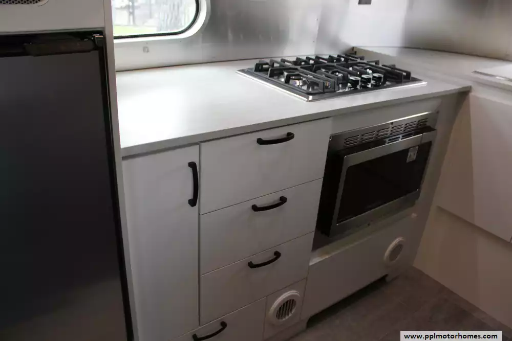 Specs: Length: 21 ft.,Width: 8 ft., Height: 9.58 ft., Interior Height: 6.58 ft., Payload Capacity: 1,025 lbs., Total Fresh Water Tank Capacity: 23 gal., Total Gray Water Tank Capacity: 30 gal., Total Black Water Tank Capacity: 18 gal., Number of Propane Tanks: 2, Total Propane Tank Capacity: 40 lbs.