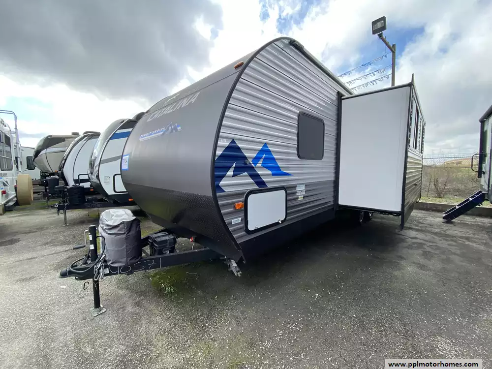 This 2022 Catalina Summit 261BHS has a 1 Slide-out, 1 Ducted Air Conditioner, Double Door 110v Ge Refrigerator, Automatic Main Awning, Outside Speakers, Microwave, 3 Burner Range