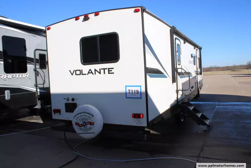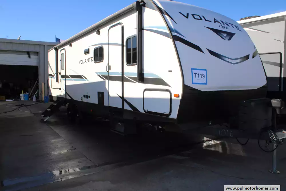 The 2022 CrossRoads Volante 29RB is a mid-size travel trailer designed to balance comfort, convenience, and practicality, ideal for couples or small families. It's about 33'6" long, with a dry weight around 5,978 lbs and a GVWR of 7,600 lbs, making it towable by a variety of trucks and SUVs. Inside, it's built to sleep up to 6 people, with a front private bedroom featuring a king bed, a roomy living/dining area (thanks to one large slide-out), a U-shaped dinette, and a jackknife sofa. A full rear bath includes a 30" x 36" shower and dual-sink setup, and there's even a closet prepped for an optional washer/dryer. The kitchen is equipped with a 10.7 cu ft 12-volt refrigerator, 3-burner cooktop/oven, XL double sink, and solid-surface countertops. For comfort and convenience, the trailer includes a 13,500 BTU A/C, power awning with LED lights, exterior shower, ample storage, and USB ports, making it a "home-away-from-home" on the road.