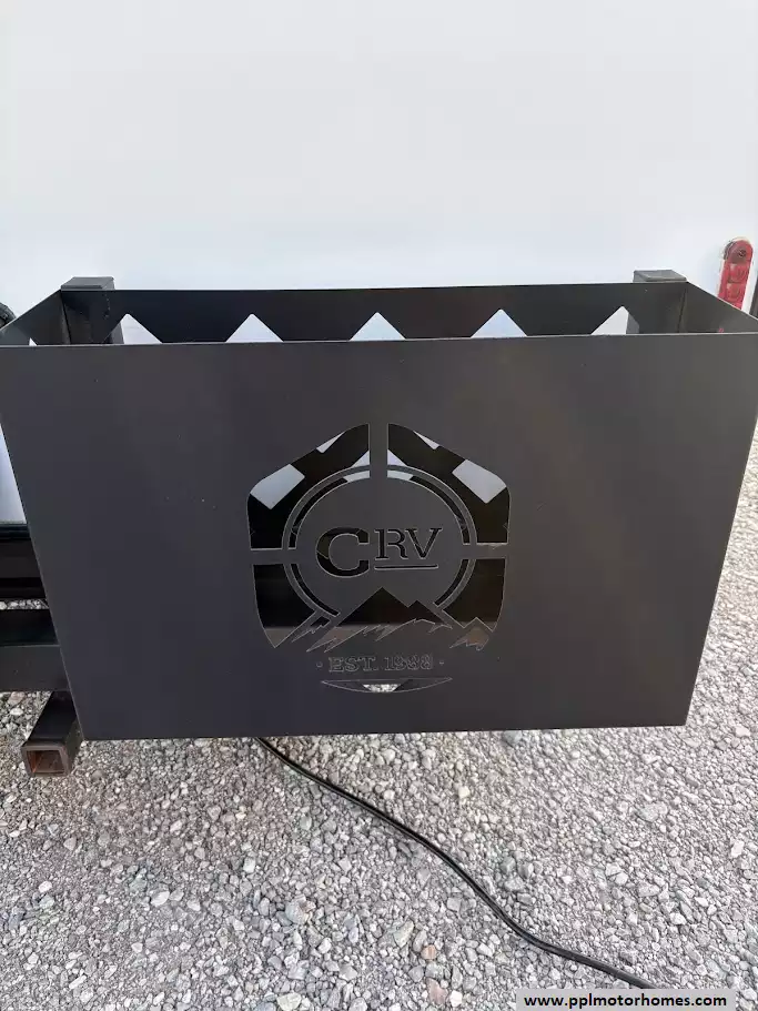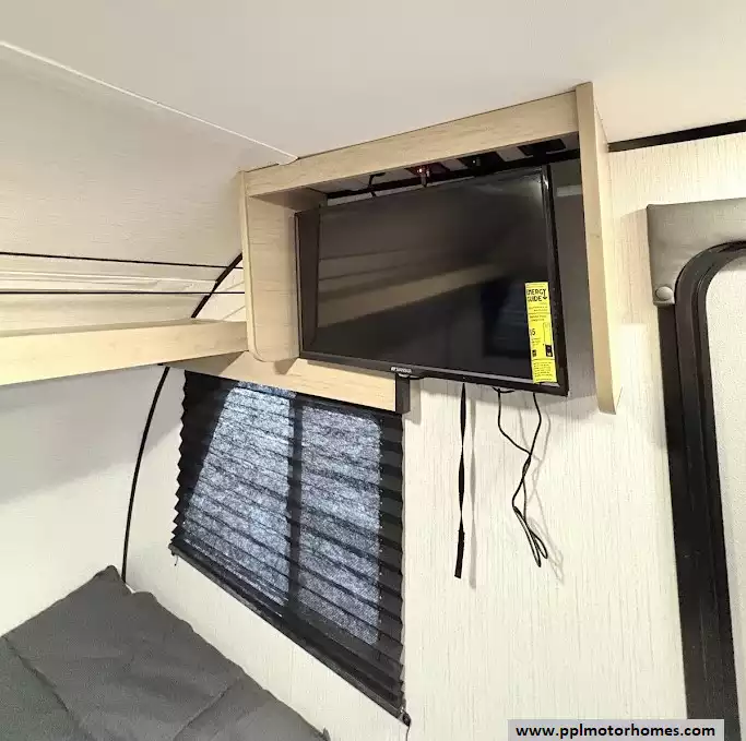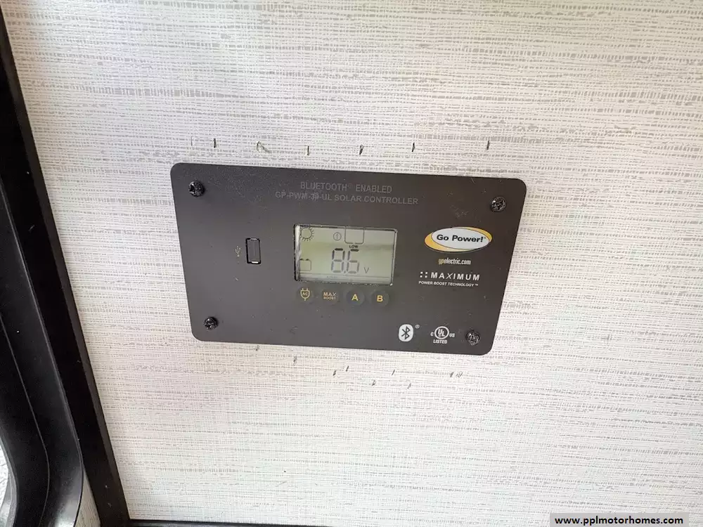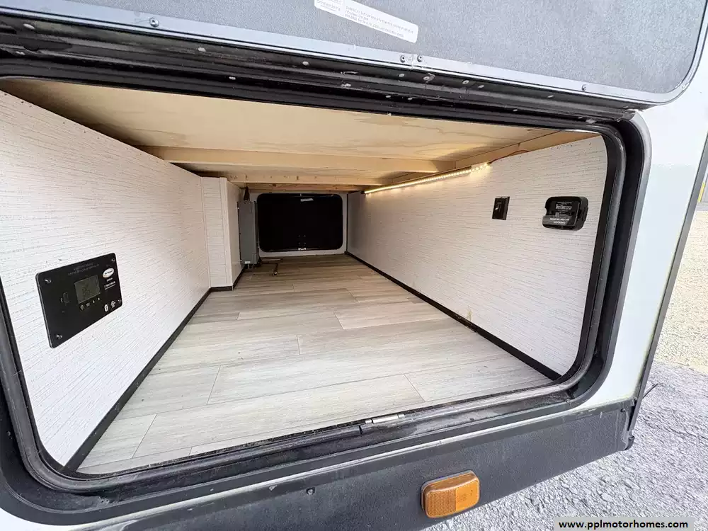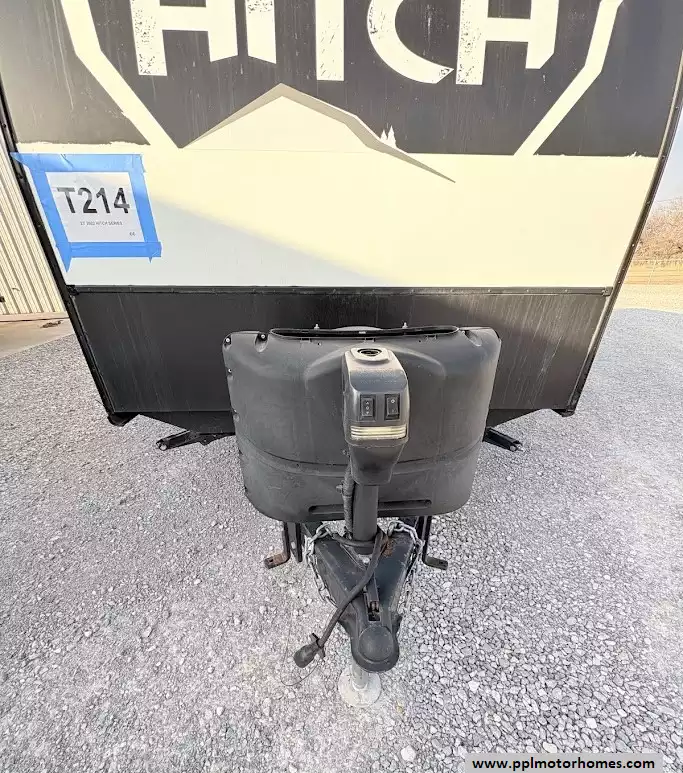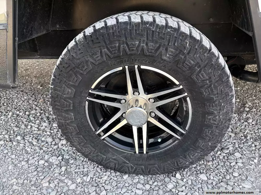 Outside you will find a power awning with LED lighting, large pass-through storage, exterior speakers, pet friendly leash D-rings and all terrain tires.