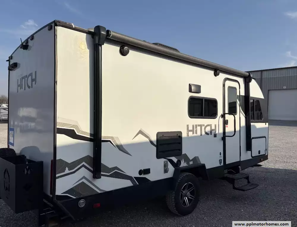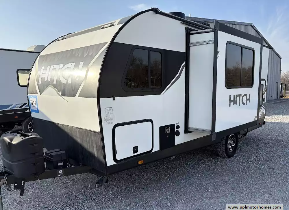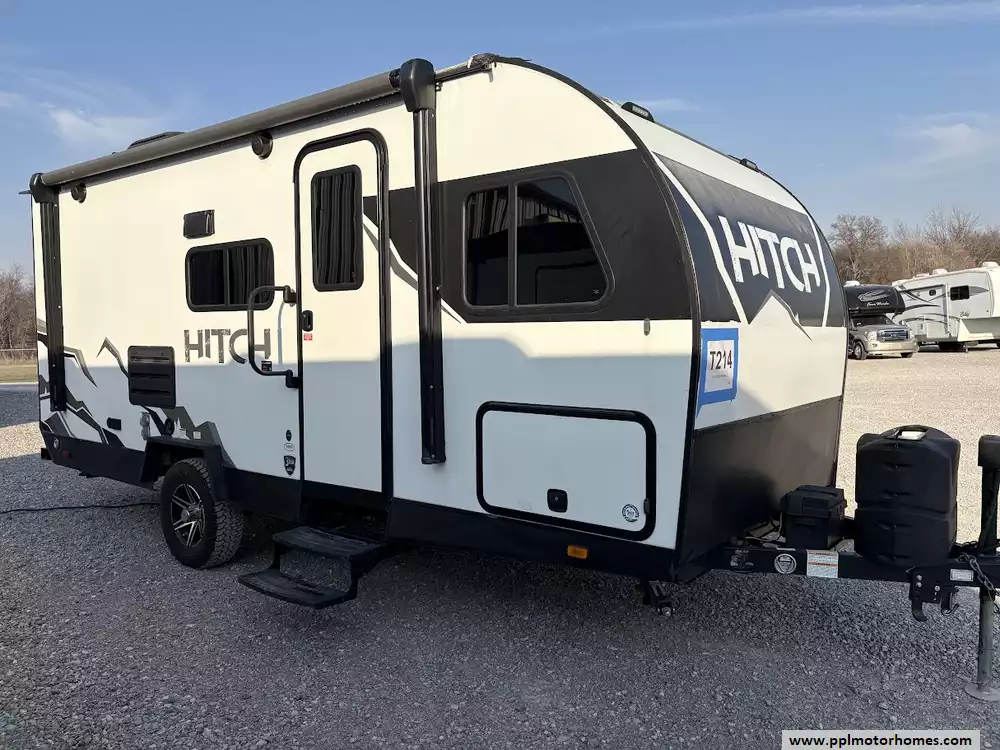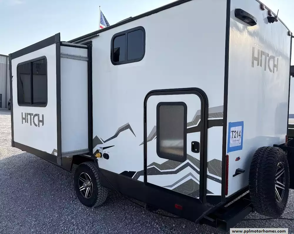 The Hitch Series by Cruiser RV is an ultra-lite travel trailer line built for adventure, featuring an all-aluminum superstructure, Azdel composite walls, and plywood floors for durability. It is designed for campers who want the amenities of a larger trailer in a smaller, more accessible size, suitable for both campgrounds and off-grid living with its standard solar package and 15" all-terrain tires. The single-slide bunkhouse layout is designed to maximize space in a compact footprint.