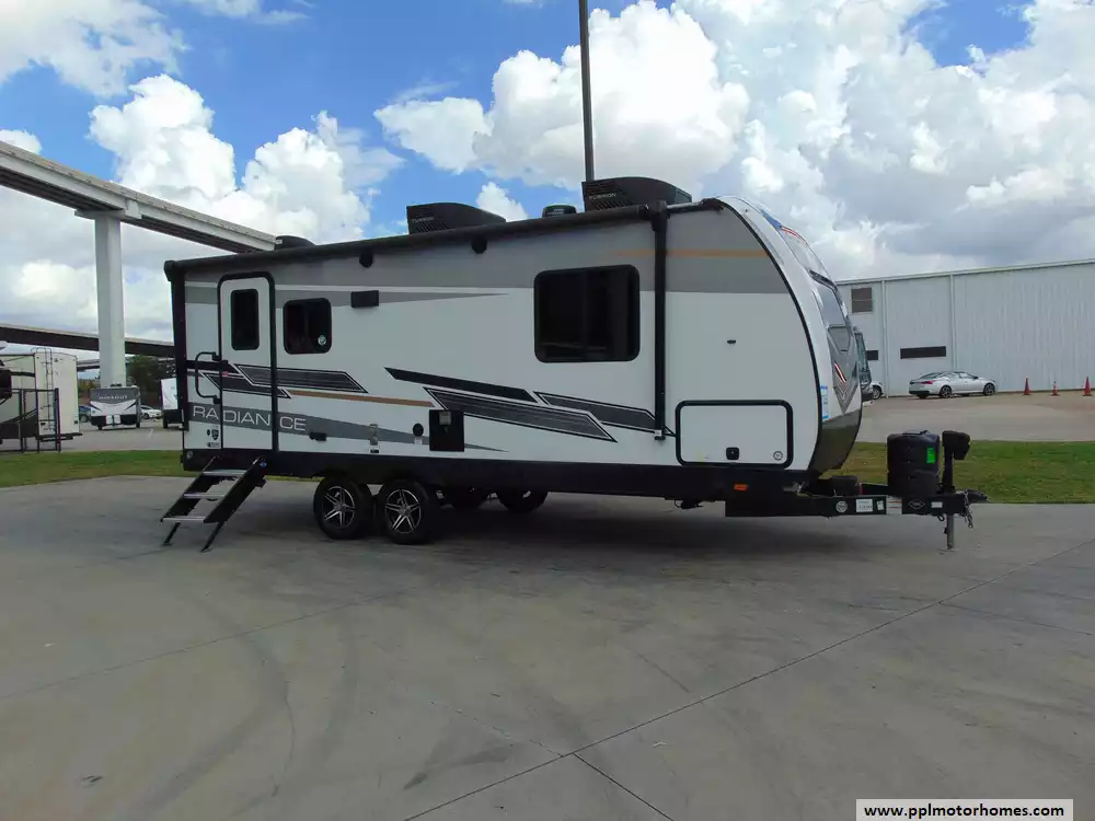 This 2022 Radiance 21RB is a compact yet well-appointed travel trailer designed for couples or small families seeking a balance of comfort,functionality,and easy towing.It is known for its stylish design and thoughtful layout,making it a great option for both weekend getaways and longer road trips.Amenities Include...Electric Tongue Jack, 1 Slide-out, 2 Ducted Air Conditioner,Theatre Seating,MorRyde Steps,Residential Everchill Refrigerator, Automatic Main Awning, TV, Microwave, 3 Burner Range,and Oven.This travel trailer is towable by a wide range of vehicles, making it a flexible and convenient choice for travelers.