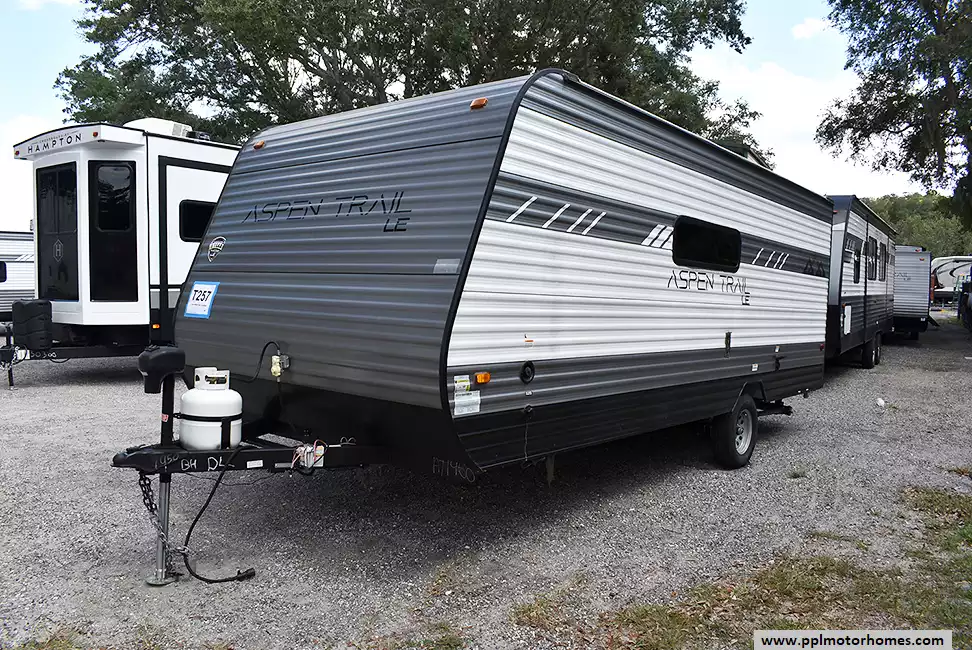 The 2022 Dutchmen Aspen Trail LE Series 1950BH is a compact travel trailer perfect for families. It features:Bunk Beds: Great for kids.Queen Bed: Comfortable main sleeping area.Dinette: Converts to an extra bed.Kitchen: Includes a stovetop, microwave, refrigerator, and sink.Bathroom: Equipped with a shower and toilet.Outdoor Kitchen: Features a grill and fridge.Awning: Provides shade for outdoor relaxation.Storage: Ample space throughout.