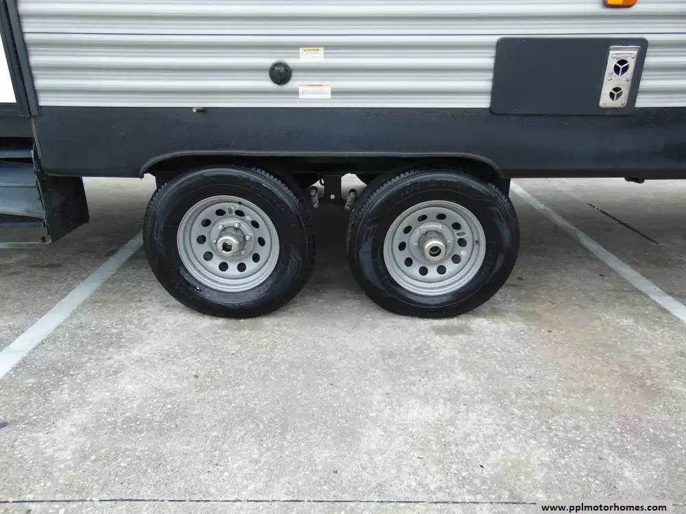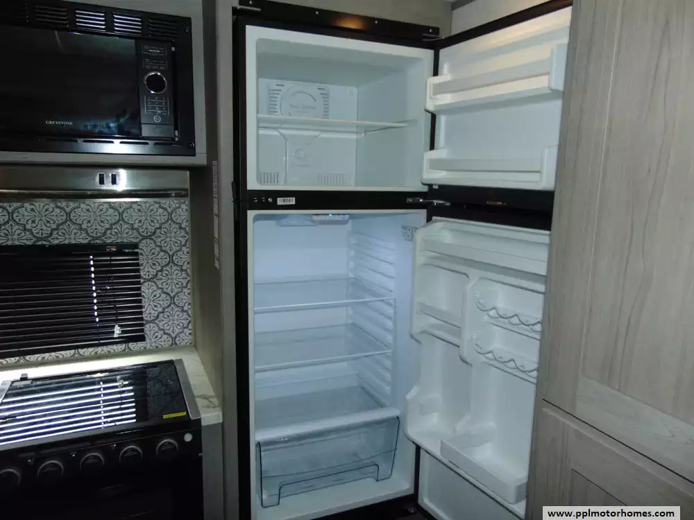 Specs: Length: 34.92 ft., Width: 8 ft., Height: 12.33 ft.,Interior Height: 6.83 ft., Payload Capacity: 2,802 lbs,Total Fresh Water Tank Capacity: 60 gal.,Total Gray Water Tank Capacity: 42 gal.,Total Black Water Tank Capacity: 42 gal.,Total Number of Propane Tanks 2., Propane Tank Capacity: 40 lbs.
