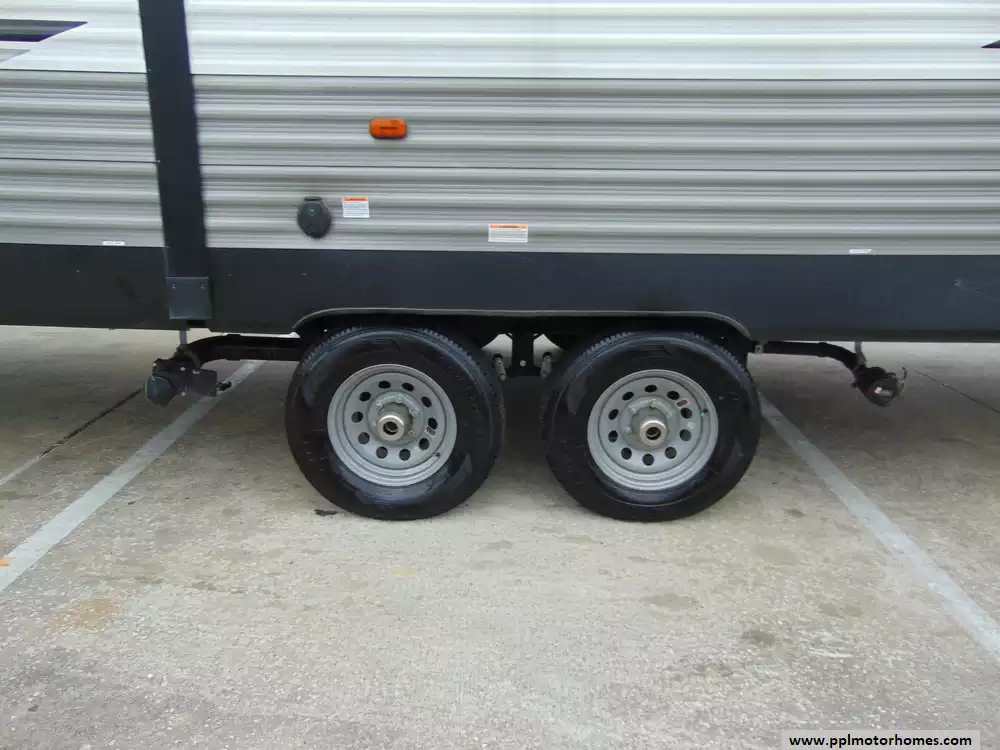 Specs: Length: 34.92 ft., Width: 8 ft., Height: 12.33 ft.,Interior Height: 6.83 ft., Payload Capacity: 2,802 lbs,Total Fresh Water Tank Capacity: 60 gal.,Total Gray Water Tank Capacity: 42 gal.,Total Black Water Tank Capacity: 42 gal.,Total Number of Propane Tanks 2., Propane Tank Capacity: 40 lbs.