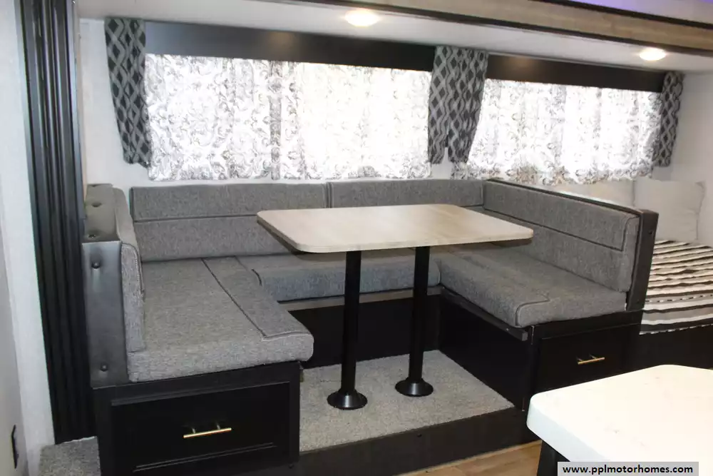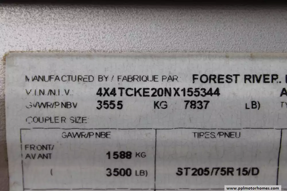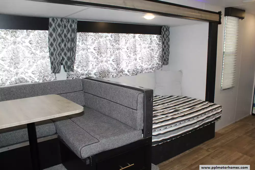 Specs: Length: 36.8 ft.,Width: 8 ft., Height: 10.8 ft.,Payload Capacity: 1,409 lbs., Total Fresh Water Tank Capacity: 40 gal., Total Gray Water Tank Capacity: 38 gal., Total Black Water Tank Capacity: 38 gal.,Number of Propane Tanks: 2., Propane Tank Capacity: 40 lbs.