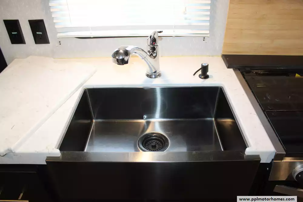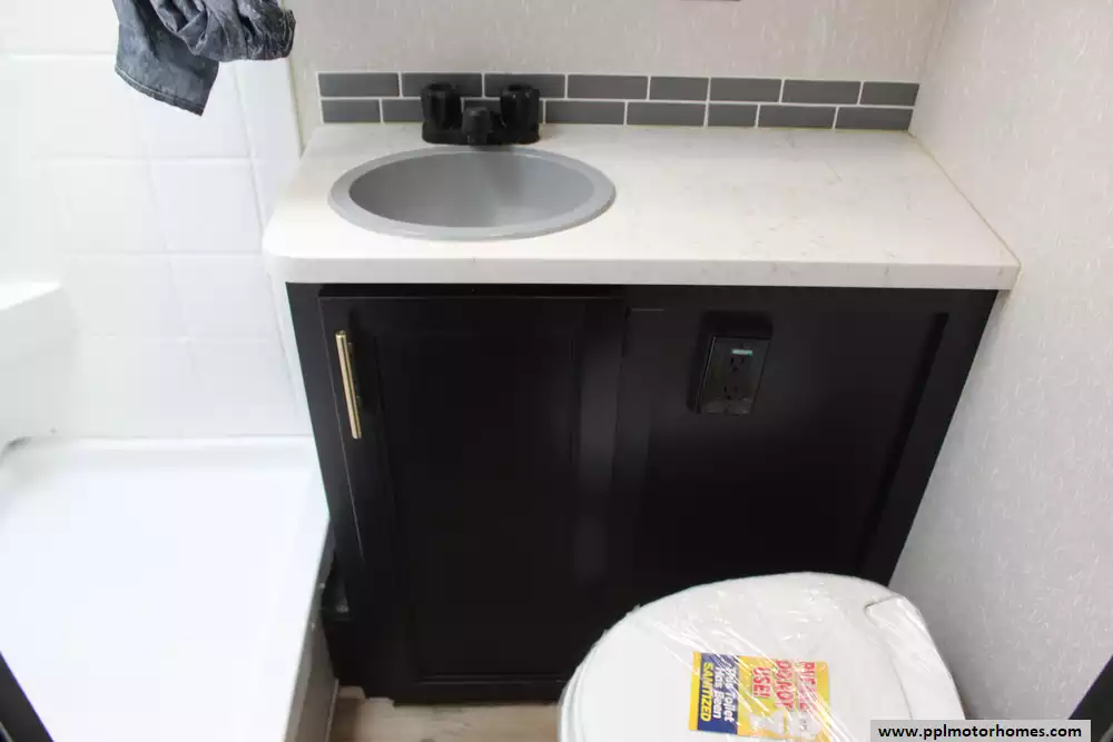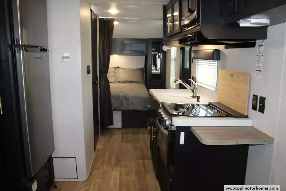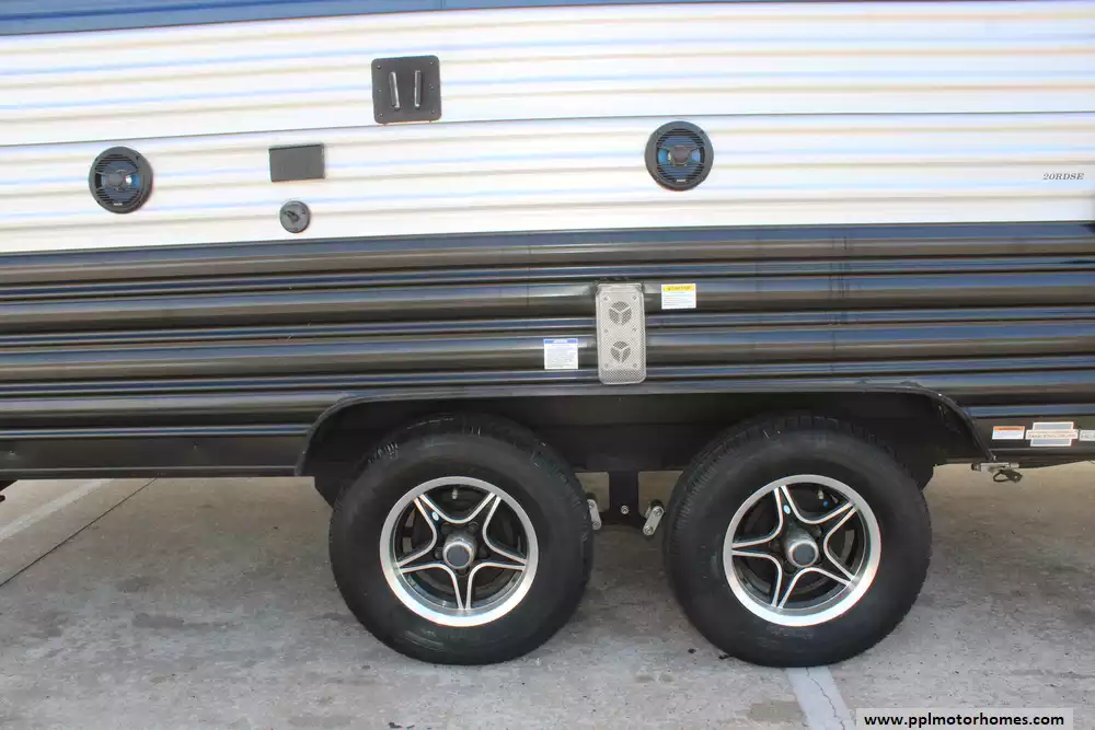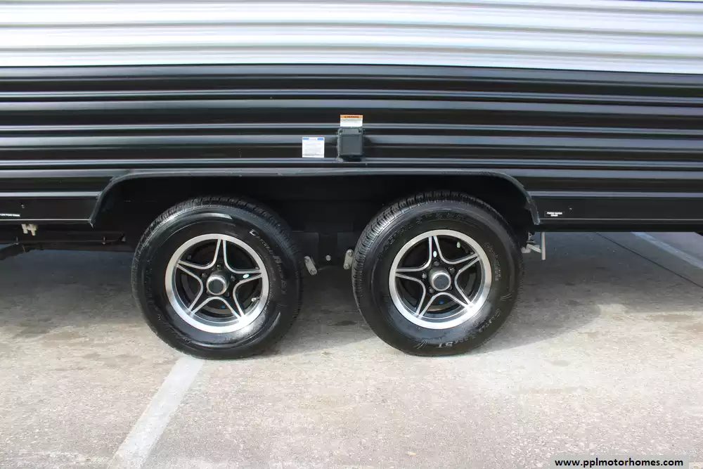 Specs: Length: 25.4 ft., Height: 10.6 ft., Width: 8 ft., Total Fresh Water Tank Capacity: 52 gal., Total Grey Tank Capacity: 38 gal., Total Black Water Tank Capacity: 28 gal.