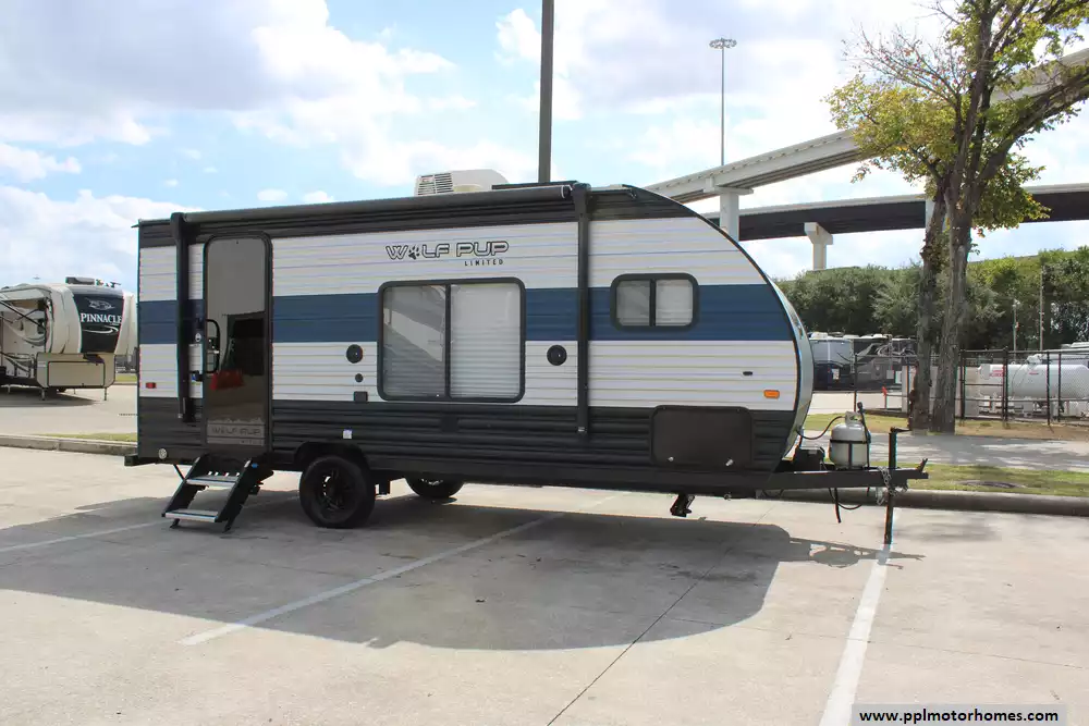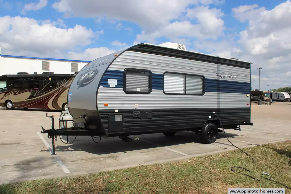 This 2022 Cherokee Wolf Pup 16HE is a relatively compact, single-axle travel trailer. Features Include...1 Non-Ducted Air Conditioner, Double Door Refrigerator, Automatic Main Awning, Outside Speakers, TV, Outside Shower, Microwave, and 2 Burner Range.