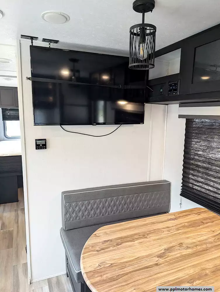 Setting up your campsite is effortless with the electric tongue jack and the automatic main awning that provides instant shade for outdoor relaxation. Entertainment options abound with a built-in TV, satellite receiver, and outside speakers for enjoying your favorite music in the open air. Practical features like the microwave, outside shower, and reliable rubber roof construction ensure that every trip is as convenient as it is memorable. This Freedom Express delivers the high-quality craftsmanship and thoughtful amenities that have made Coachmen a trusted name for generations of explorers.