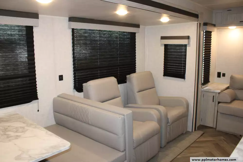 (Floor plan is NOT drawn to scale. Length of vehicle is approximate. Buyer is responsible for verifying actual length. PPL Motor Homes compiled this list of features, specifications, equipment and options as a guide. No representation or warranties, either express or implied, are made as to the accuracy of the information herein. Please verify for yourself all items listed before purchase.)