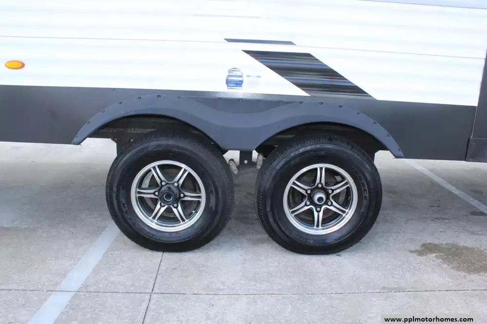 Specs: Length: 35 ft., Width: 8 ft., Height: 11.3 ft., Payload Capacity: 2,456 lbs., Total Fresh Water Tank Capacity: 40 gal., Total Grey Tank Capacity: 60 gal., Total Black Water Tank Capacity: 30 gal.