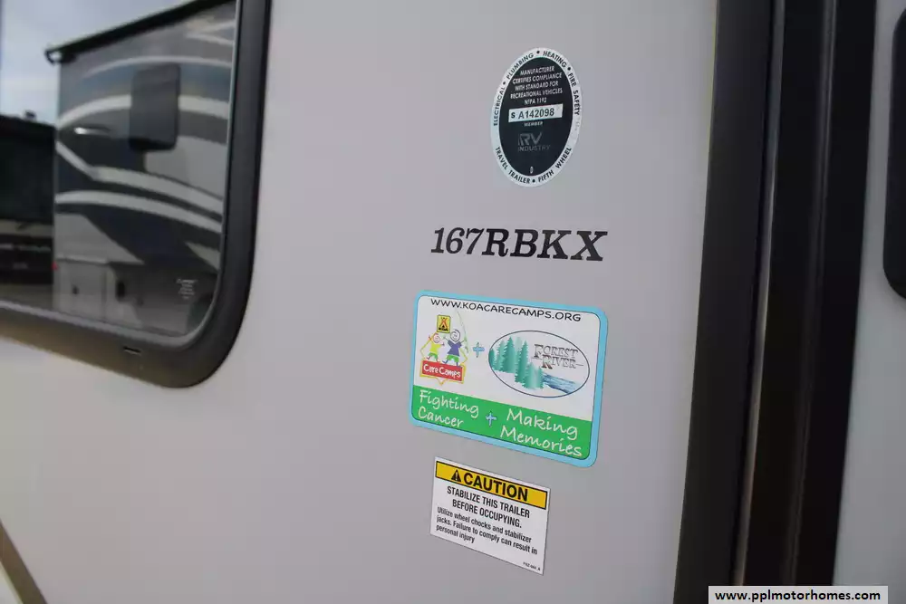 With sleeping capacity for up to four, ample holding tank capacities, and features like a power awning, 13.5K BTU air conditioner, and solar prep, the 167RBKX delivers a well-rounded blend of convenience, comfort, and portability for both weekend getaways and extended trips.