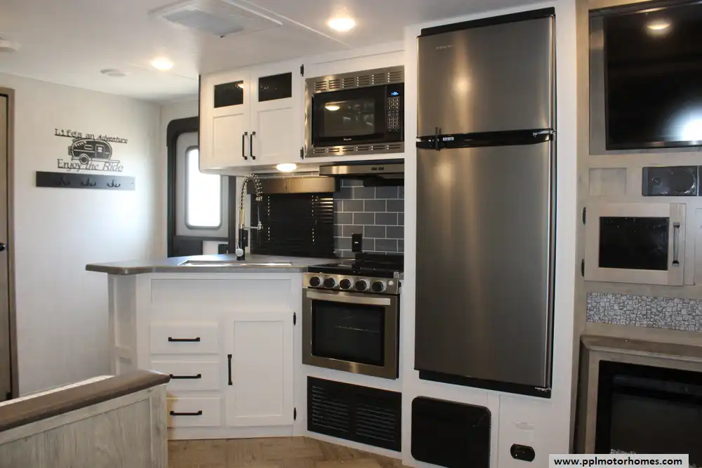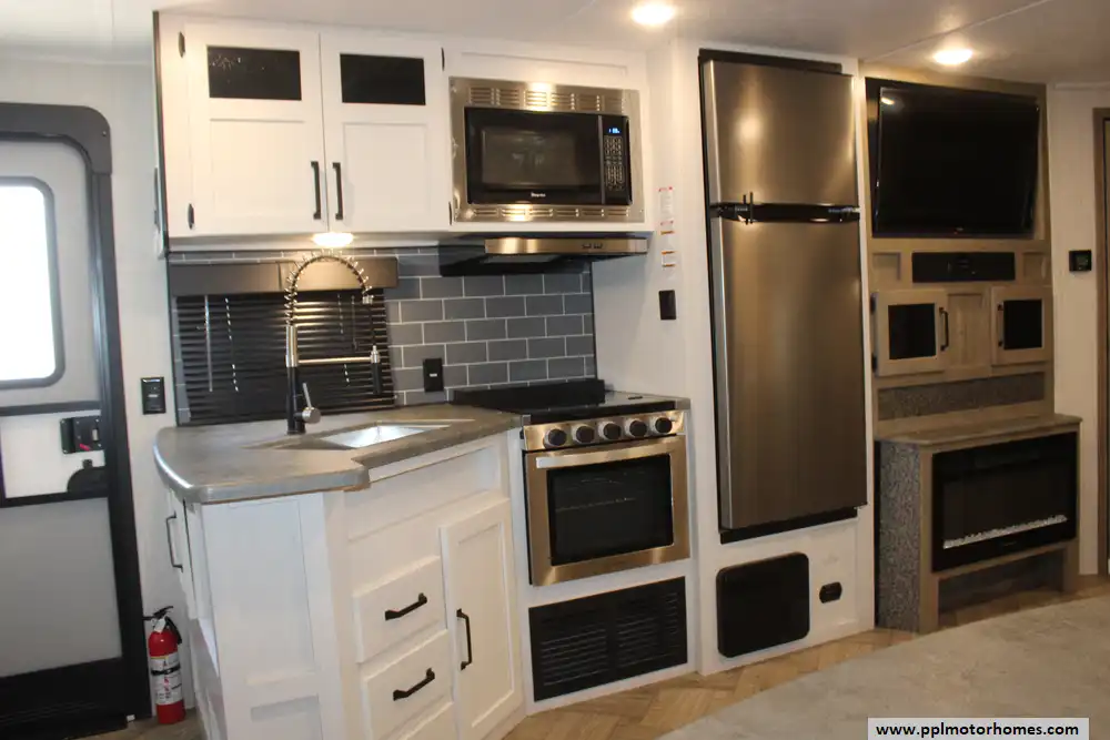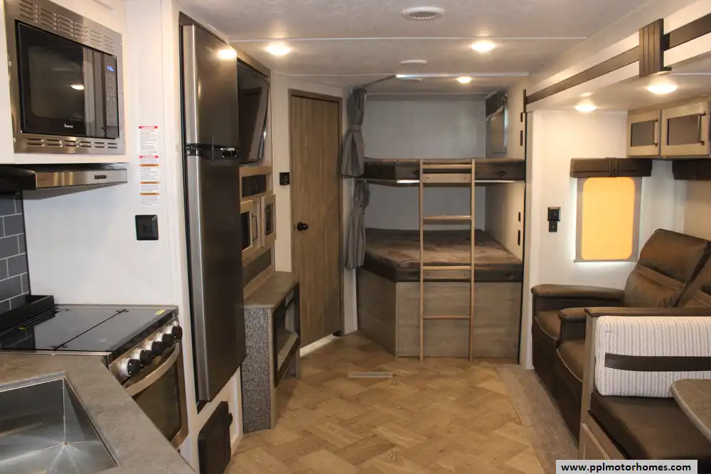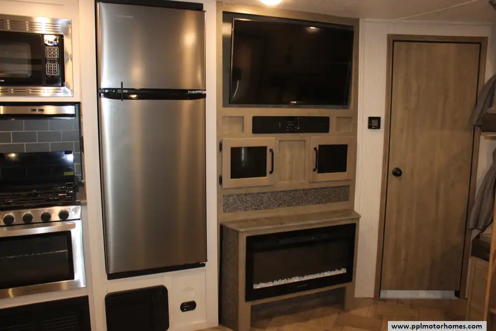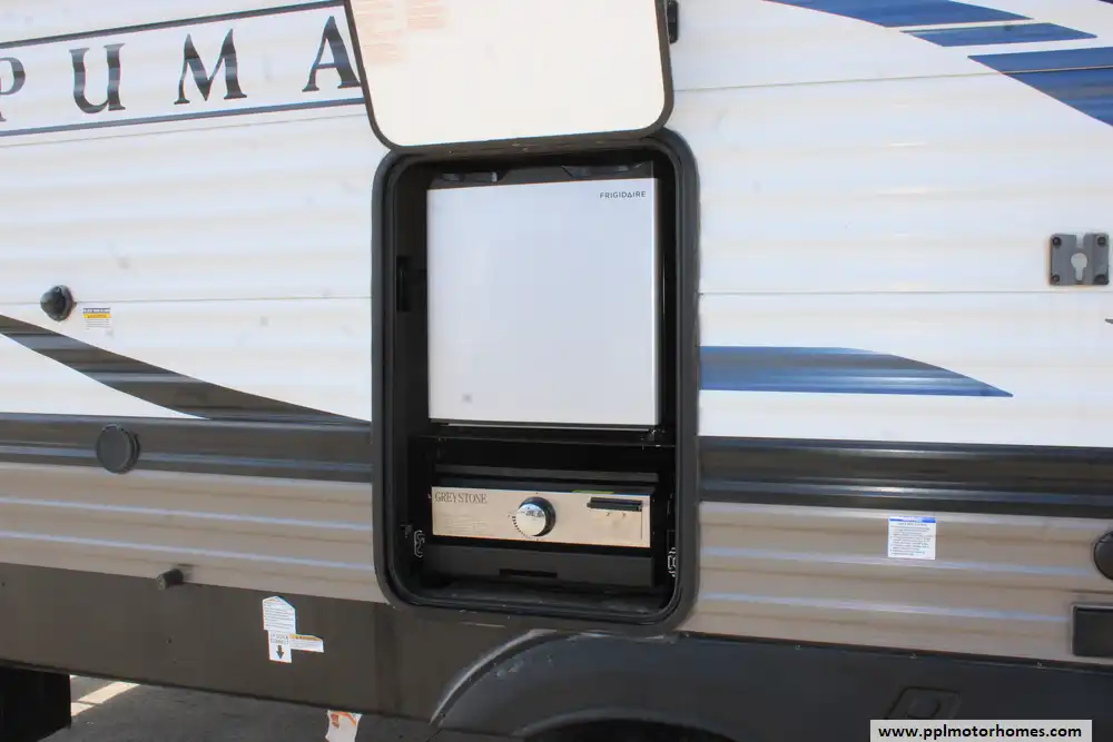 Inside, the single slide-out creates an expansive living area that feels like a true home away from home. The interior is anchored by a cozy fireplace and a versatile entertainment setup with two TVs, perfect for relaxing after a day of exploring. The gourmet kitchen is a standout feature, equipped with a three-burner range, oven, convection microwave, and a spacious double-door 12v Everchill refrigerator to handle all your meal prep needs. With ducted air conditioning providing consistent climate control throughout the cabin, this 2022 Puma 28DBFQ offers the reliable craftsmanship and thoughtfully designed amenities that have made Palomino a trusted name for generations of campers.