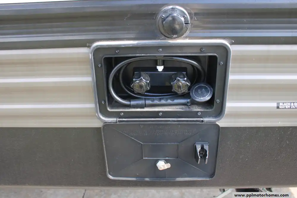 Specs: Length: 32.10 ft., Height: 11.1 ft., Width: 8 ft., Total Fresh Water Tank Capacity: 43 gal., Total Grey Tank Capacity: 65 gal., Total Black Water Tank Capacity: 35 gal.